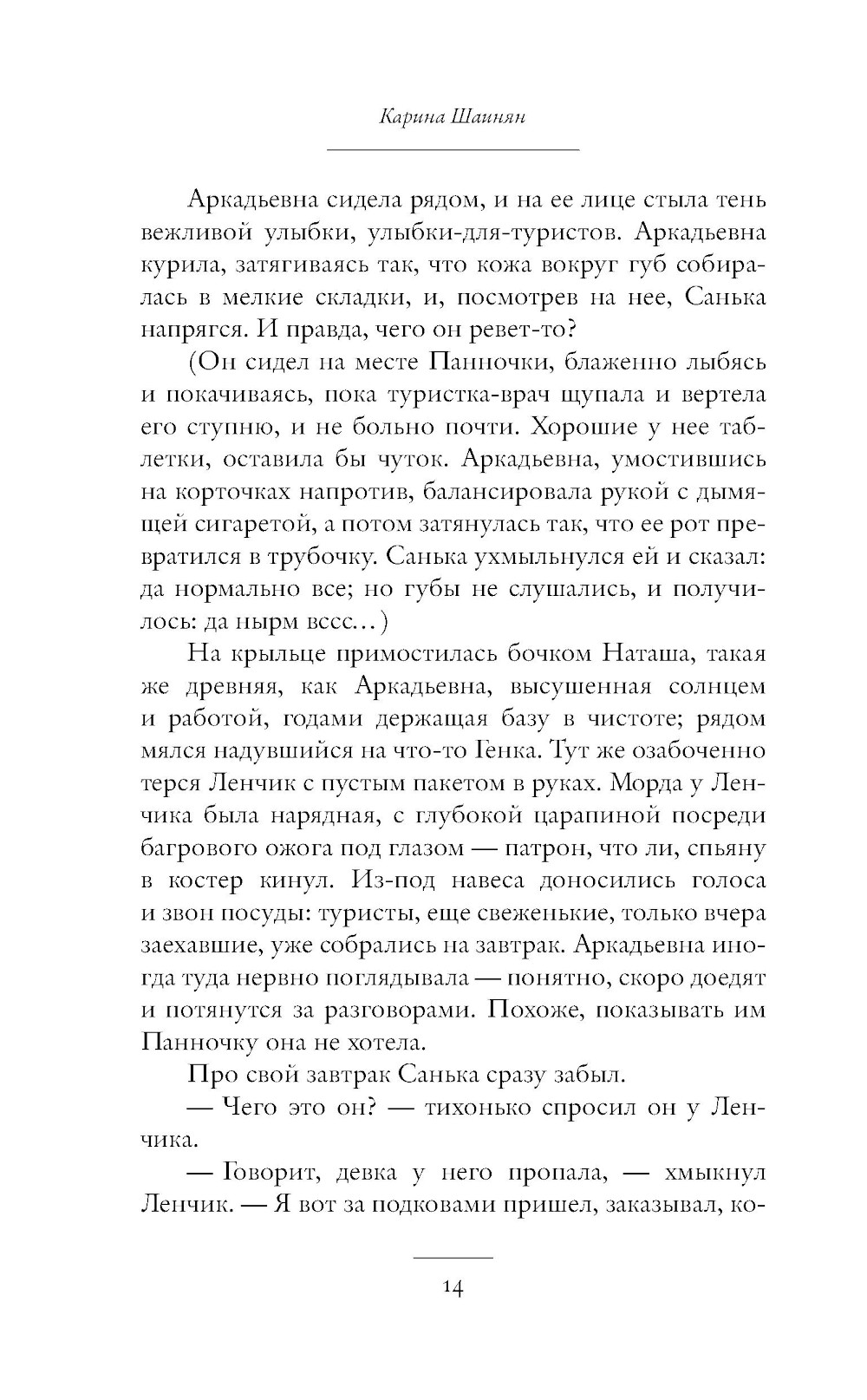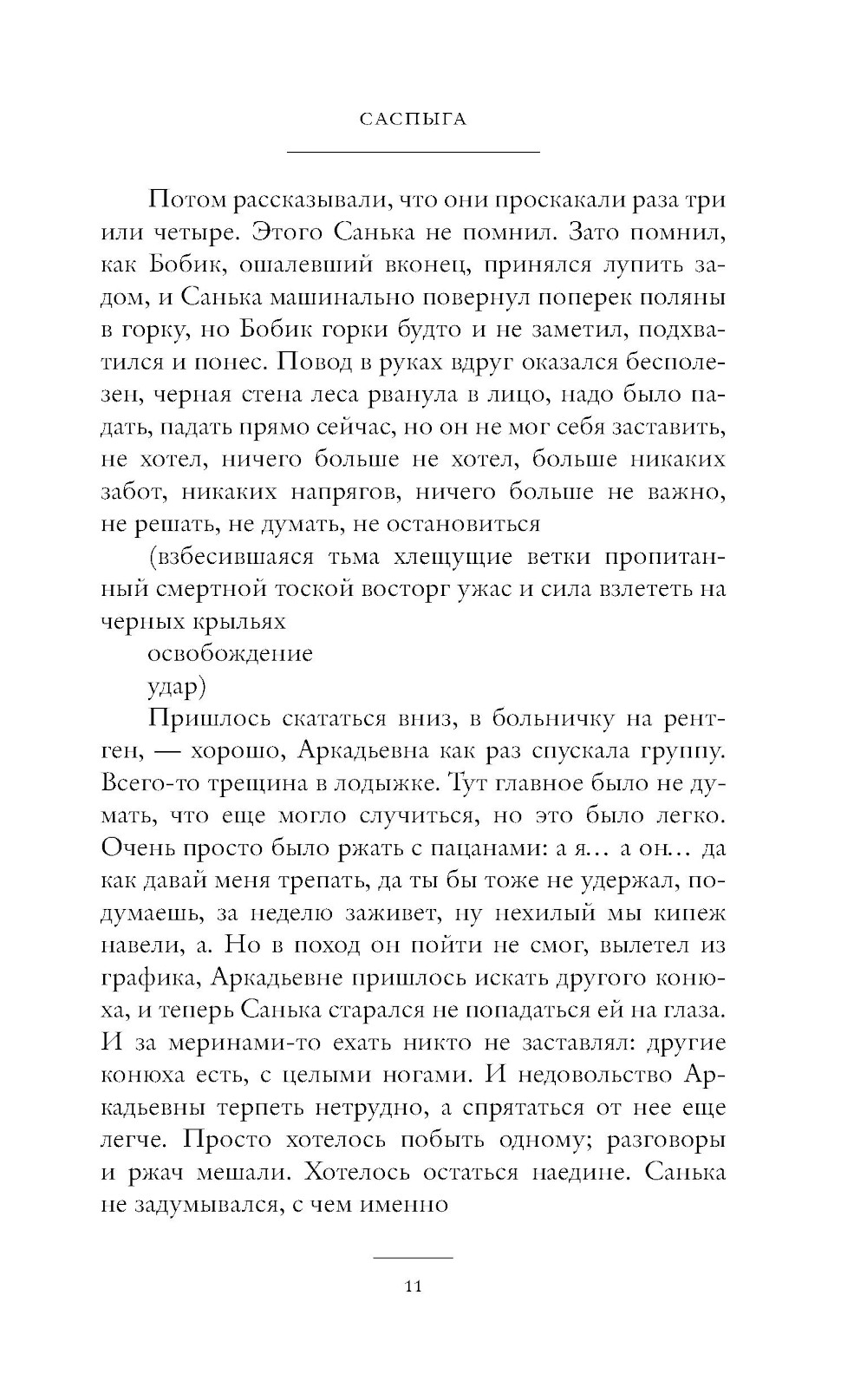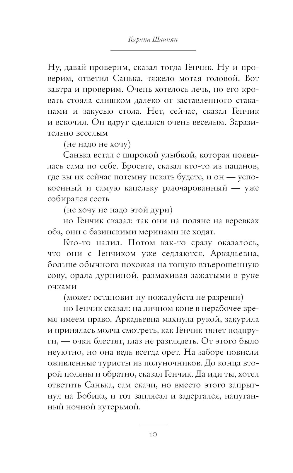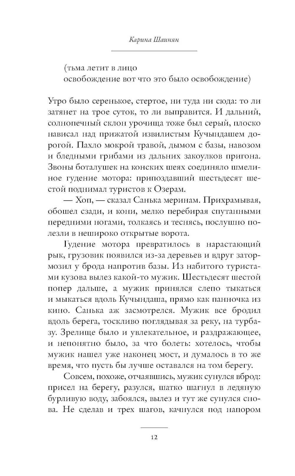 Карина Шаинян - писатель, автор романа «С ключом на шее» и других книг. Если мертвые кони как ни в чем не бывало прибиваются к табуну, а живых людей забывают в тайге, - это значит, что по горам Алтая снова ходит саспыга. Нет ничего вкуснее ее мяса. И нет ничего желаннее. Туристка Ася отбивается от группы - ее нужно вернуть. Повар Катя находит беглянку, но вынуждена идти вместе с ней. Катю тревожит неестественно послушный конь и преследуют смутные воспоминания об охоте на саспыгу, ей хочется только одного - идти дальше по следу. Сможет ли она побороть себя, справиться с прошлым и спасти Асю от страшной судьбы? ««Саспыга» - это путешествие в мир, где всё настоящее: и горы, и кони, и люди, и демоны. Боль, которую все они испытывают, тоже настоящая, и от этой искренности, однозначности и ясности то становится очень страшно, то очень хочется плакать. Карина написала важную и красивую книгу». (Анна Козлова) «Шаинян, возможно, изобрела новый поджанр - «алтайская готика». В ее романе судьба современной городской девушки оказывается вплетена в мифологию Горного Алтая. Тайга, горы, кони - и саспыга, одновременно и мифическое, и реальное существо, чье мясо может утолить все печали...» (Юлия Гумен) «Есть авторы, умеющие точно и с любовью писать о местах и людях, делая их теплыми, живыми, узнаваемыми. Есть авторы, умеющие рассказывать головокружительно захватывающие истории. Тех, кто умеет и то, и другое - единицы. Роман Карины Шаинян сразу и затягивающе жуткий хоррор, и напряженная психологическая драма, и вдохновенный гимн Алтайской земле». (Галина Юзефович)