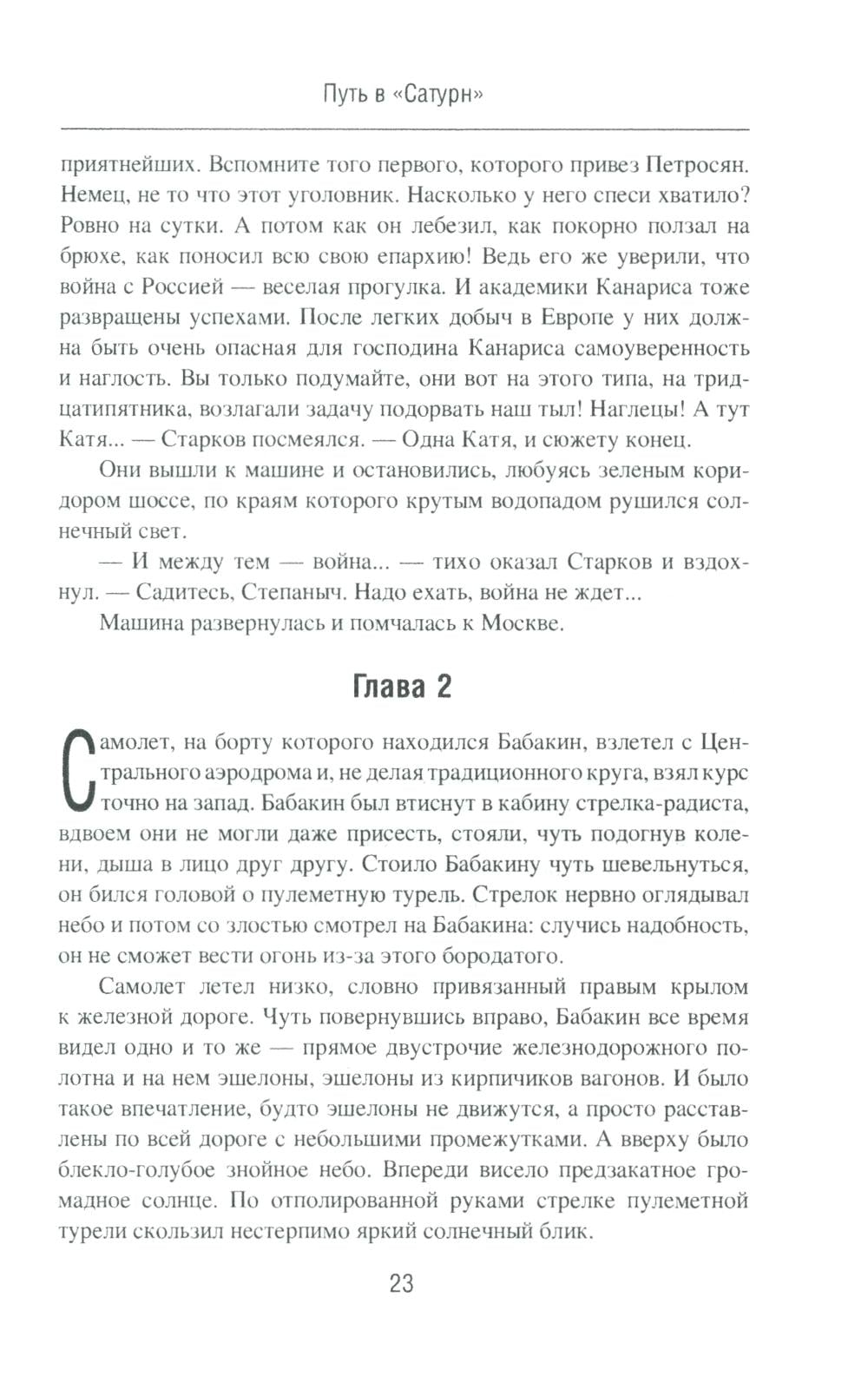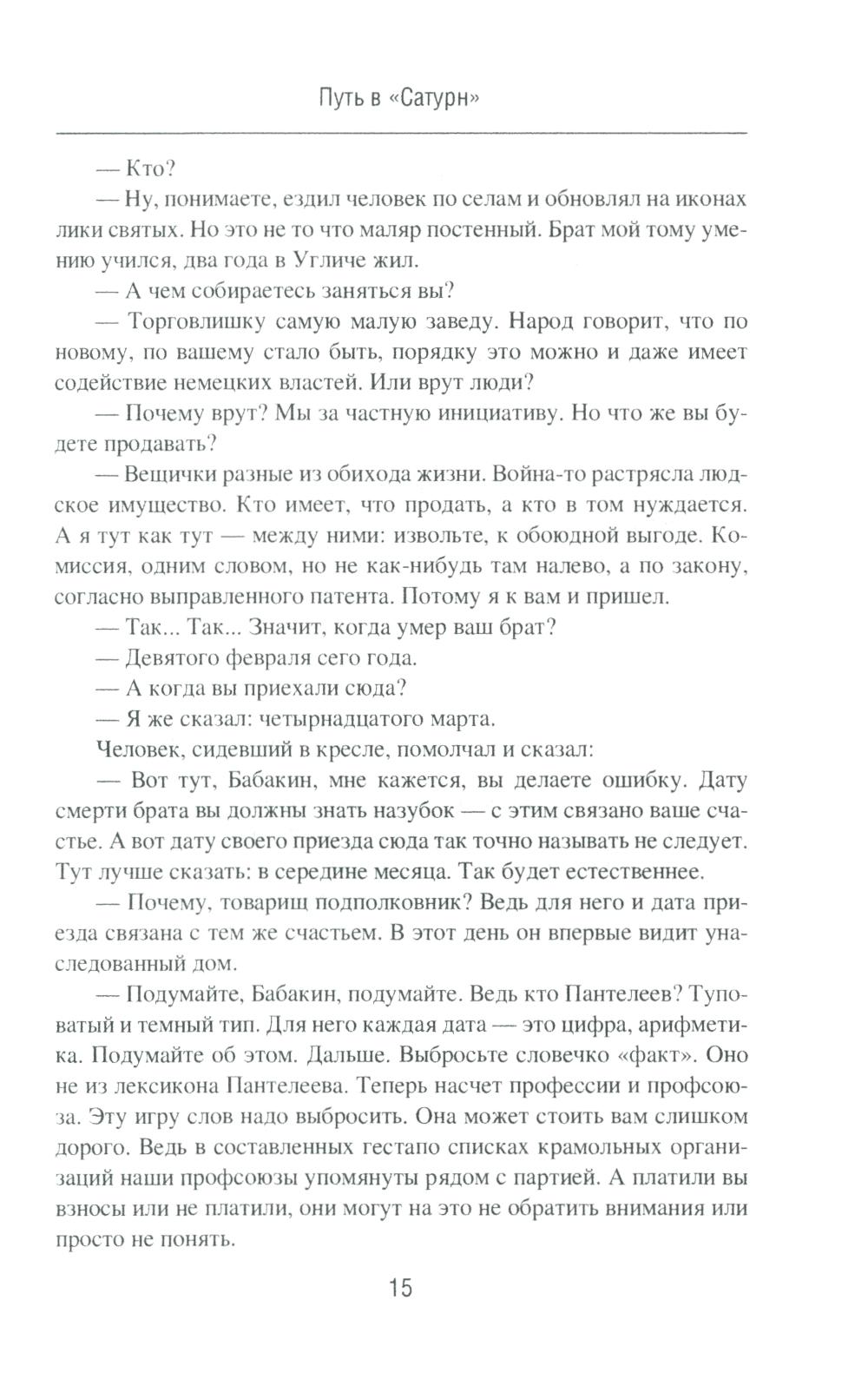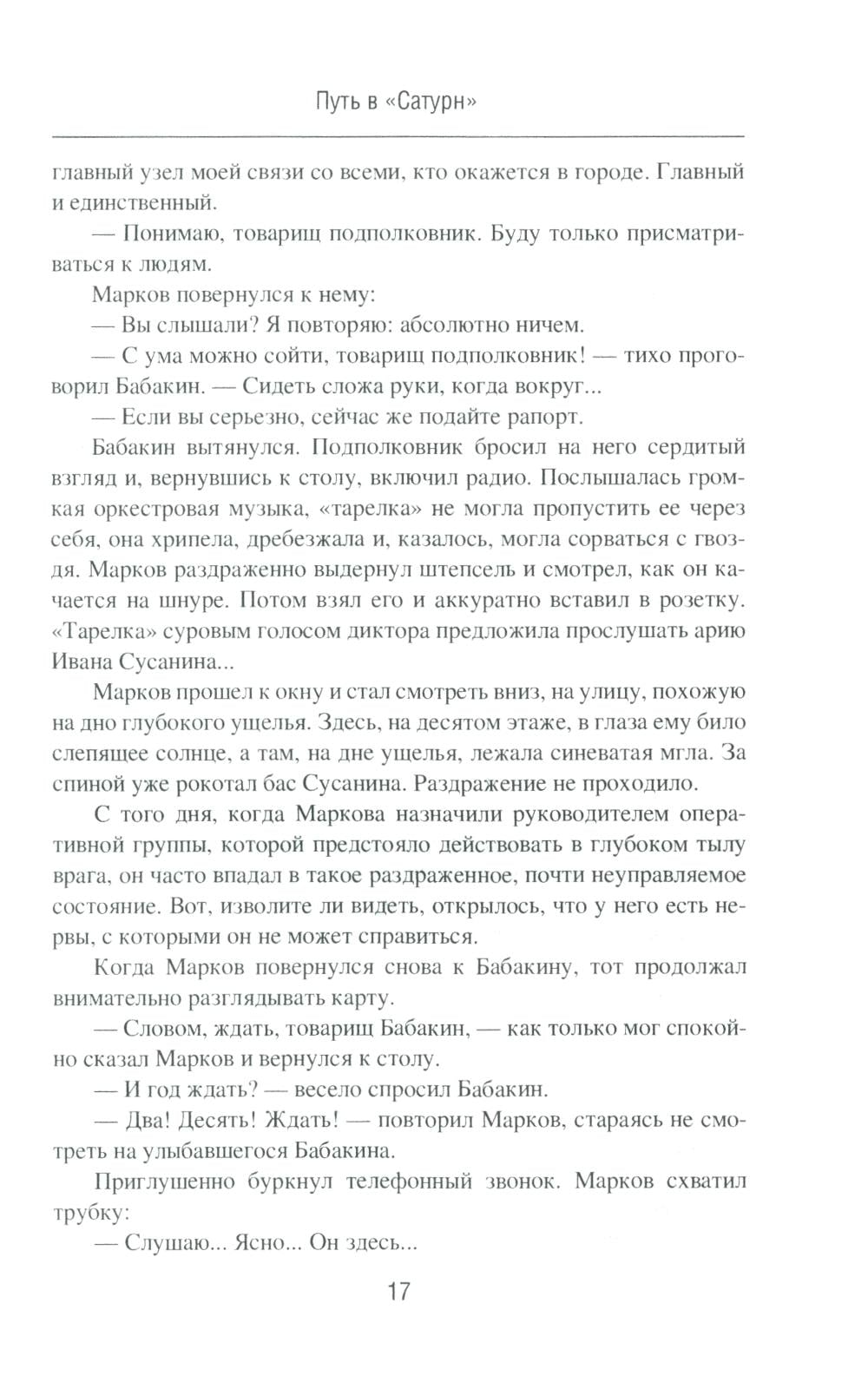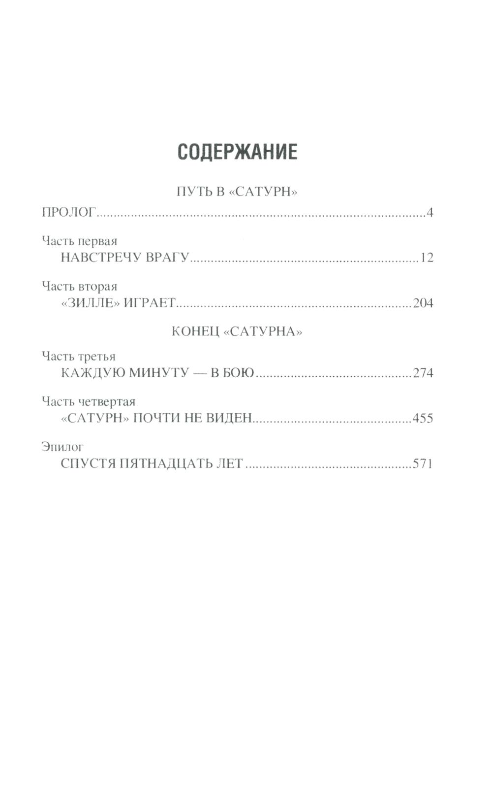 «Путь в "Сатурн"» - первая книга знаменитого военно-приключенческого романа Василия Ардаматского «"Сатурн" почти не виден». Группе советских разведчиков удается внедриться в немецкий центр шпионажа «Сатурн», осуществляющий подрывную деятельность на московском направлении. Доступ к секретной информации противника позволяет нашим тайным агентам успешно осуществлять задания командования... «Конец "Сатурна"» - вторая книга знаменитого военно-приключенческого романа Василия Ардаматского «"Сатурн" почти не виден». Получив сведения о немецких шпионах, советские разведчики смогли дезинформировать умного и коварного врага с помощью фальшивых донесений. Деятельность мощного разведоргана «Сатурн» оказывается нейтрализованной.| Издательство | Вече |