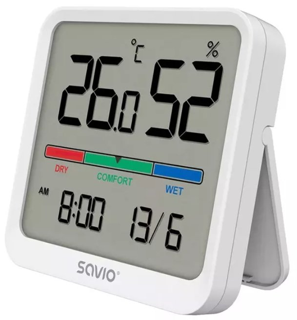 Датчик температуры и влажности, для использования внутри помещений, ЖК-экран, часы, дата, магнитный держатель, CT-01/W Белый
