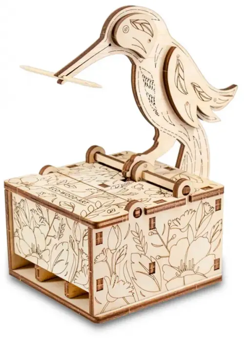 Сборная деревянная модель. Диспенсер для зубочисток EWA Design Птичка, механическая