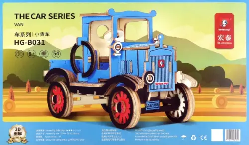 В комплект входят заготовки из фанеры с вырезанными фрагментами деталей, наждачная бумага и схема сборки. Принцип сборки состоит в соединении выдавленных деталей в порядке очередности, по схеме.