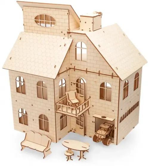 Первый в своем роде от компании Eco Wood Art (Беларусь) - Сборная модель из дерева кукольный домик с лифтом и мебелью.
