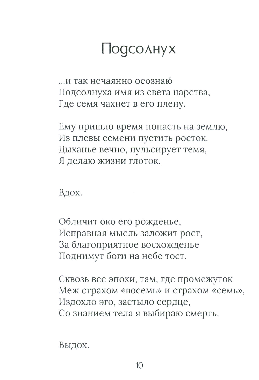 Сборник «Подсолнух» - глубокое, трогательное и слегка ироничное путешествие по разным периодам жизни автора, Елены Совы. Три цикла отражают три состояния, которые поэтесса испытывает при столкновении с новыми континентами, их обитателями и культурами. Трансформационный путь через Европу и Азию, наблюдение за устройством мира и человека в нём, ощущение «полной» жизни - всё это легло в основу философии и поэтической мудрости Елены. Её поэзия зажигает в сердце искру, способную пробудить вдохновение в каждом из нас. В ней много искренних чувств и проникновенных эмоций, но не стоит в абстрактных стихах искать реальных людей. Все личные произведения, посвященные близким людям, собраны в третьем цикле.| Издательство | Де'Либри |