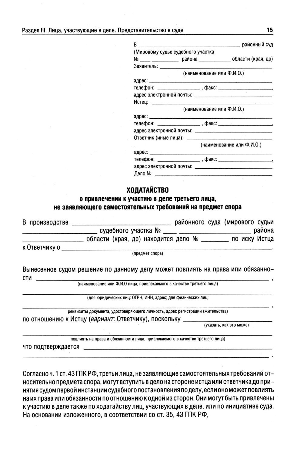 Сборник содержит образцы основных процессуальных документов в гражданском и административном судопроизводстве, составленных в соответствии с действующим законодательством и сложившейся судебной практикой. Издание учитывает новые масштабные изменения в ГПК РФ и КАС РФ, связанные с началом деятельности апелляционных и кассационных судов общей юрисдикции. Образцы снабжены рекомендациями, которые помогут юридически грамотно оформить соответствующие процессуальные действия и сэкономить время при подготовке того или иного документа. Законодательство приводится по состоянию на август 2019 г. Пособие предназначено для практикующих юристов, адвокатов, студентов юридических вузов, а также для широкого круга читателей.| Издательство | Проспект |