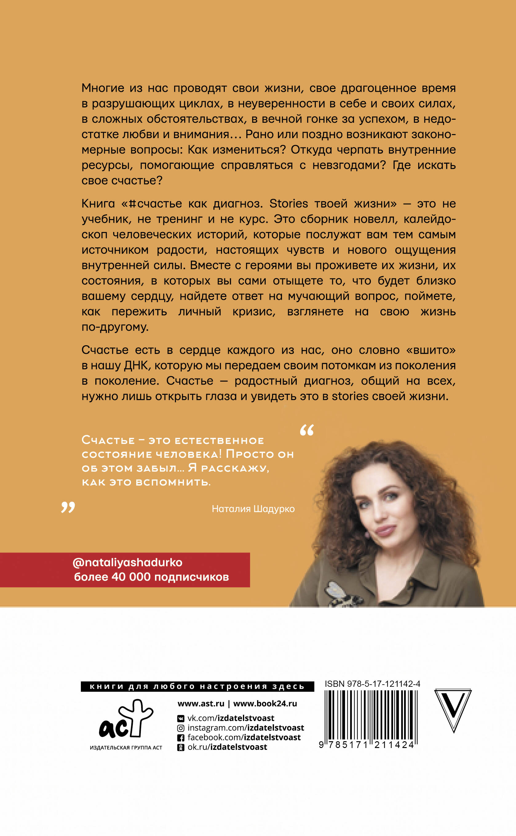 Вас давно ничего не радует, а личным проблемам нет конца и края? Остановите свой бег и выдохните. Жизнеутверждающие новеллы "#счастье как диагноз. Stories твоей жизни" помогут вспомнить, что такое счастье лично для вас...| Издательство | ИЗДАТЕЛЬСТВО "АСТ" |