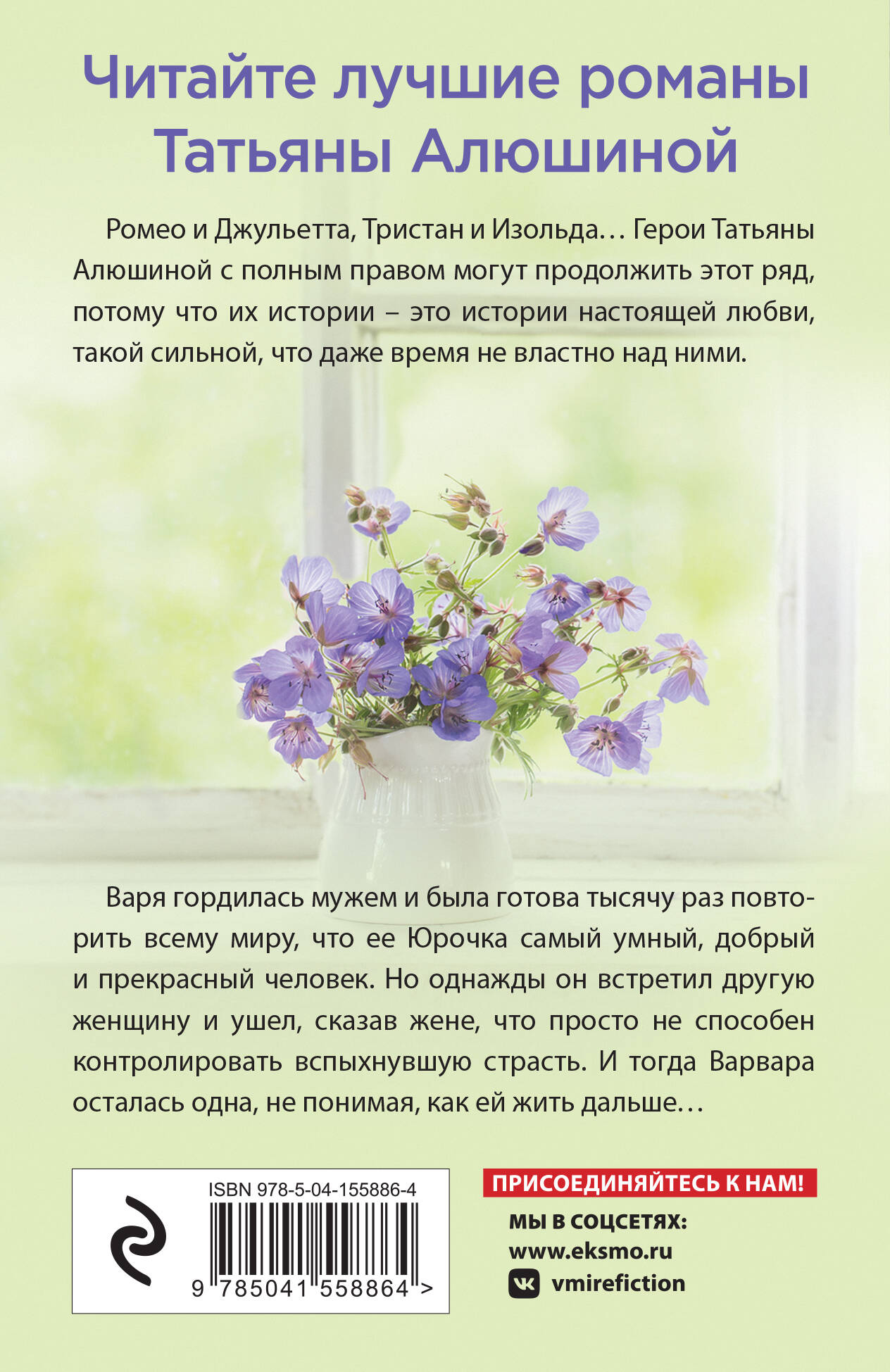 Романы Татьяны Алюшиной давно заслужили признание читательниц по всей стране, а тиражи ее книг насчитывают более пяти миллионов. Захватывающие сюжеты, незабываемые чувства, подлинная страсть - ее книги читаются на одном дыхании, а истории главных героинь трогают сердца и снова помогают поверить в любовь. Варя гордилась мужем и была готова тысячу раз повторить всему миру, что ее Юрочка самый умный, добрый и прекрасный человек. Но однажды он встретил другую женщину и ушел, сказав жене, что просто не способен контролировать вспыхнувшую страсть. И тогда Варвара осталась одна, не понимая, как ей жить дальше…| Издательство | ООО "Издательство "Эксмо" |