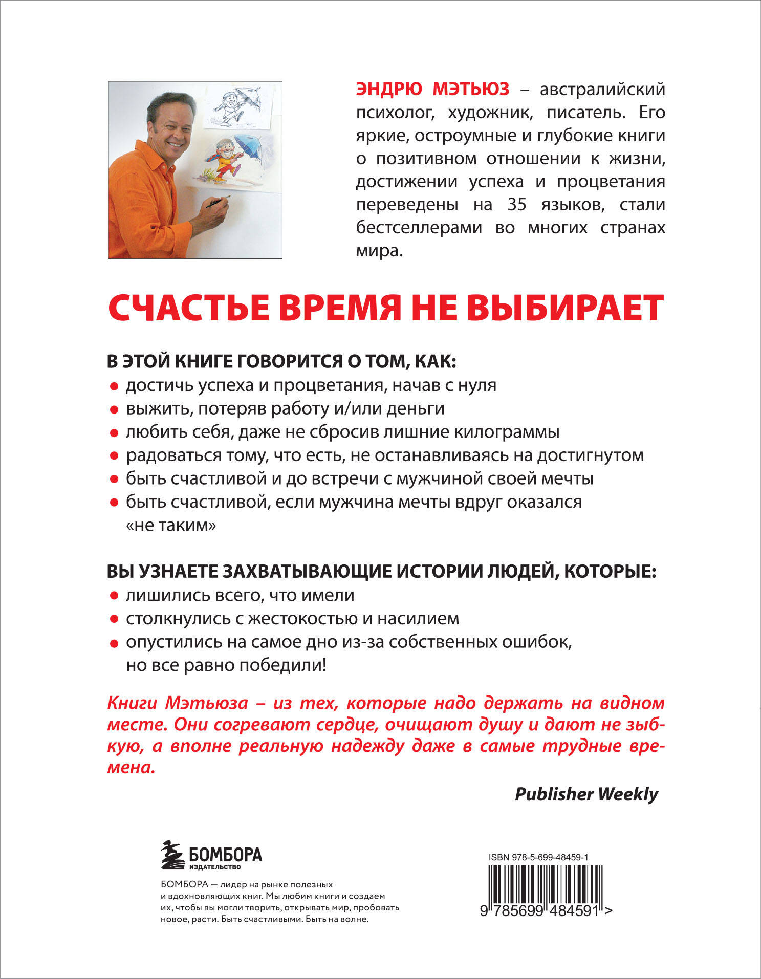 КНИГА ИЗВЕСТНОГО ВСТРАЛИЙСКОГО ПСИХОЛОГА ЭНДРЮ МЭТЬЮЗА. СУММАРНЫЙ ТИРАЖ ЕГО КНИГ В РОССИИ БОЛЕЕ 150 000 ЭКЗЕМПЛЯРОВ. Мэтьюз подробно рассказывает, как быть счастливым и не терять бодрость духа. Рассматриваются разные стороны нашей жизни - любовь, семья, дружба, здоровье, карьера, материальное благополучие. И по каждой даются четкие, остроумные, нестандартные советы. Все рекомендации сопровождаются реальными историями, где герои сумели не только встать на ноги после различных жизненных катастроф, но и достичь счастья и успеха, о которых раньше даже не мечтали. Замечательные юмористические рисунки помогают понять и принять описываемые тезисы.