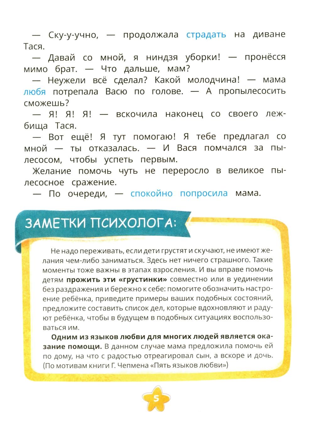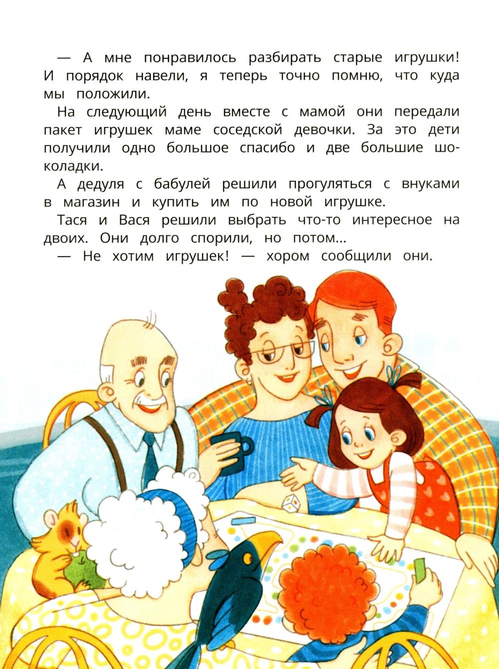 Двойняшки Тася и Вася живут в счастливой семье, у них понимающие и поддерживающие родители, заботливые и внимательные бабушка и дедушка. А как же проявляют любовь и заботу в большой дружной семье, вы узнаете из этой книги с заметками психолога.| Издательство | Феникс |