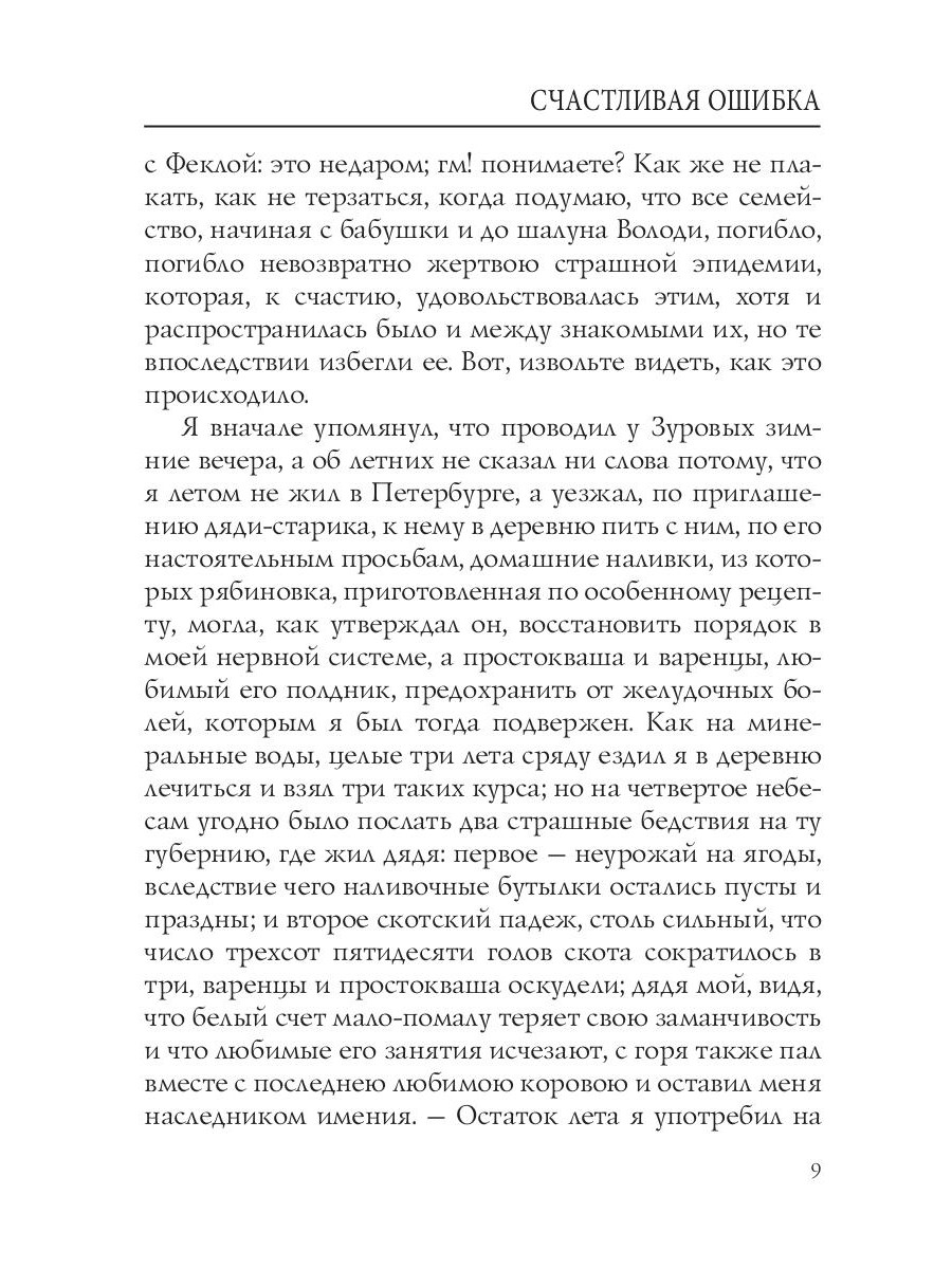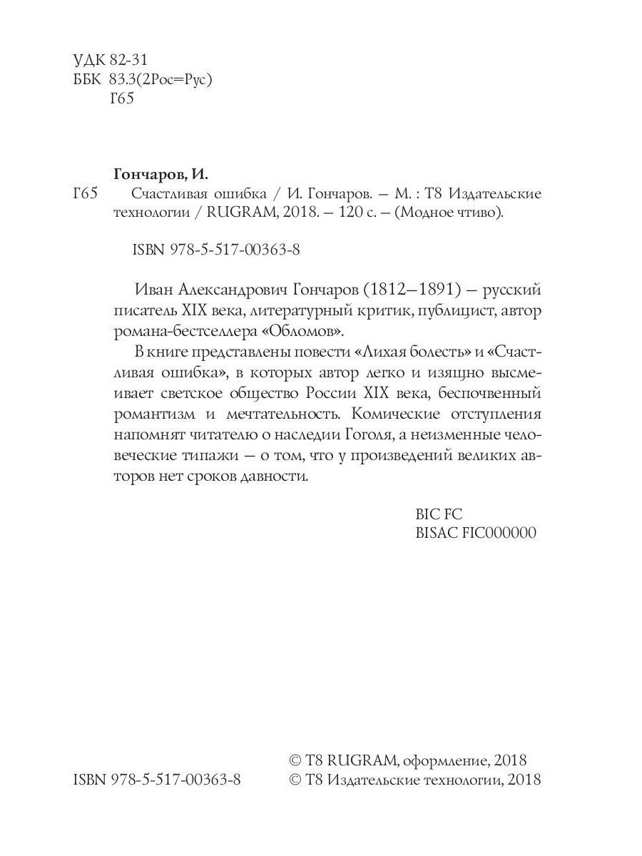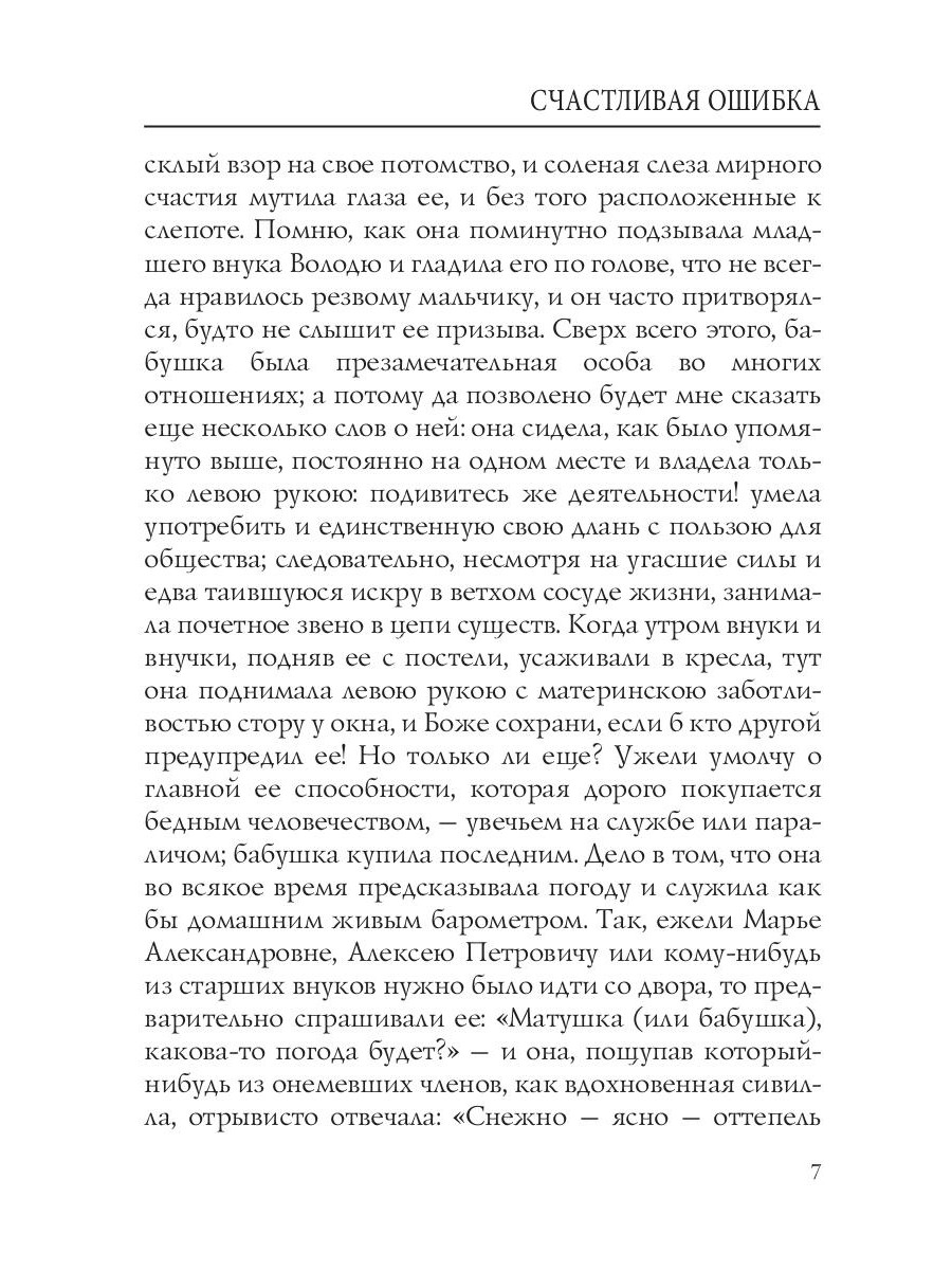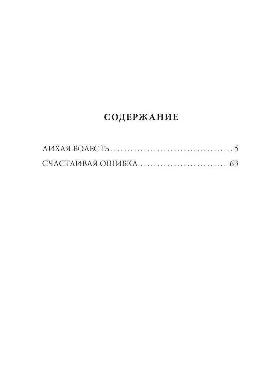 В книге представлены повести «Лихая болесть» и «Счастливая ошибка», в которых автор легко и изящно высмеивает светское общество России XIX века, беспочвенный романтизм и мечтательность. Комические отступления напомнят читателю о наследии Гоголя, а неизменные человеческие типажи - о том, что у произведений великих авторов нет сроков давности.