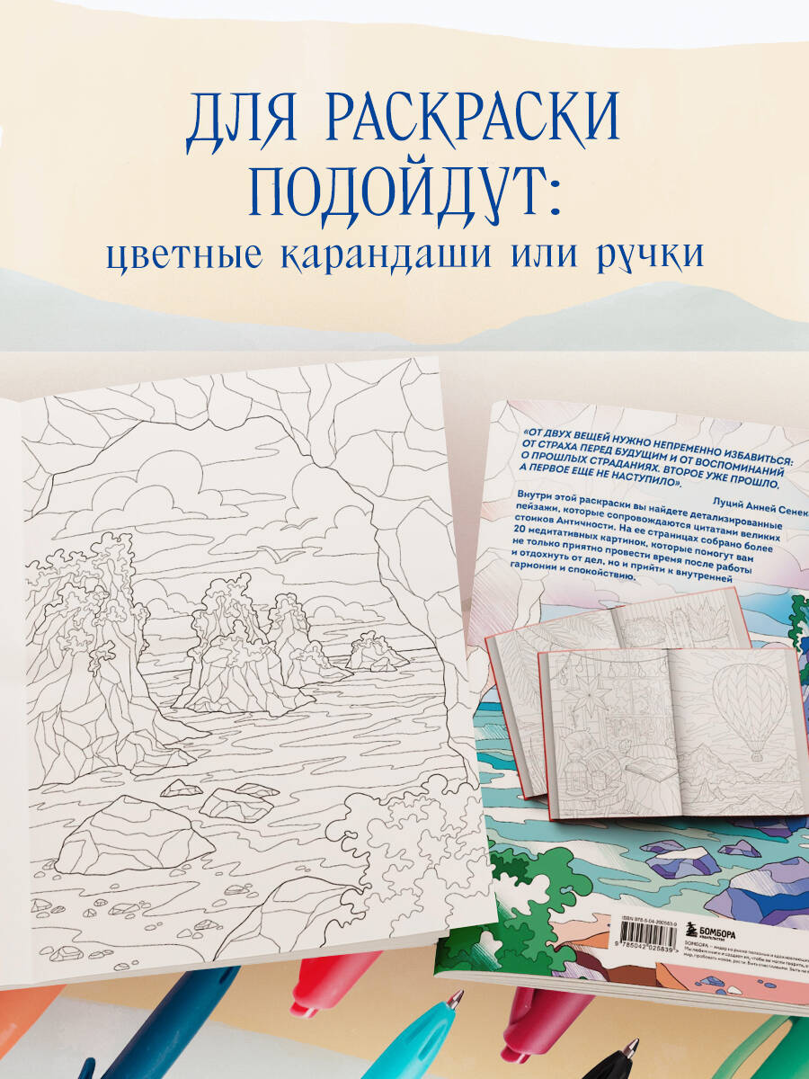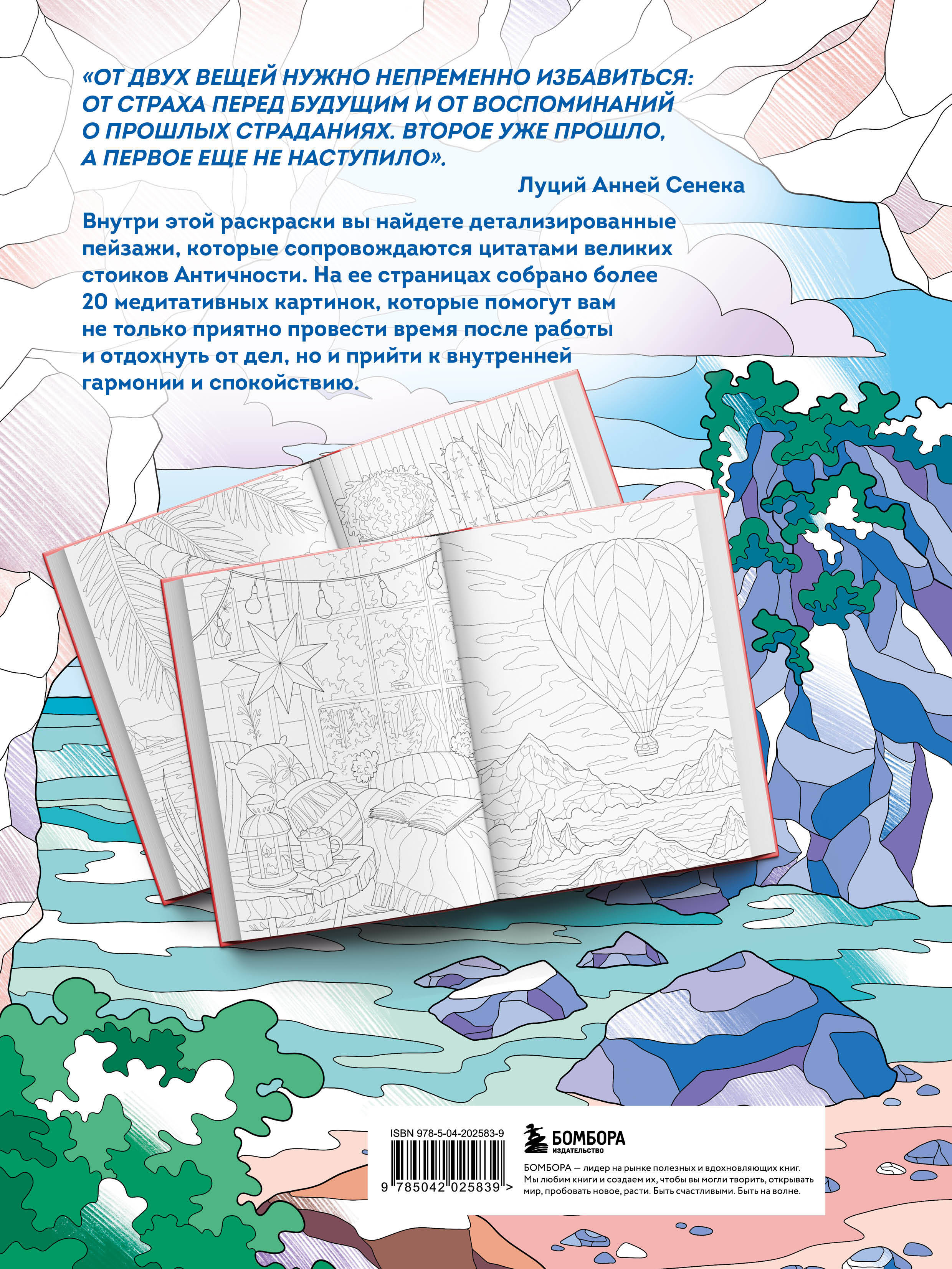 Внутри этой раскраски вы найдете детализированные пейзажи, которые сопровождаются цитатами великих стоиков. На ее страницах собрано более 20 медитативных иллюстраций, нарисованных профессиональной художницей Марией Яляевой, которые помогут вам не только приятно провести время и отдохнуть от дел, но и достичь внутренней гармонии и спокойствия. Возьмите цветные карандаши или ручки и полностью отключитесь от внешнего мира, раскрашивая удивительные узоры мандал, и через некоторое время вы вернетесь уже полностью обновленным человеком. Используйте холодные цвета (голубой, синий, фиолетовый), если хотите расслабиться. И теплые (красный, оранжевый, желтый), если хотите ощутить прилив сил и энергии. Решите, что необходимо вам сегодня.| Издательство | ООО "Издательство "Эксмо" |