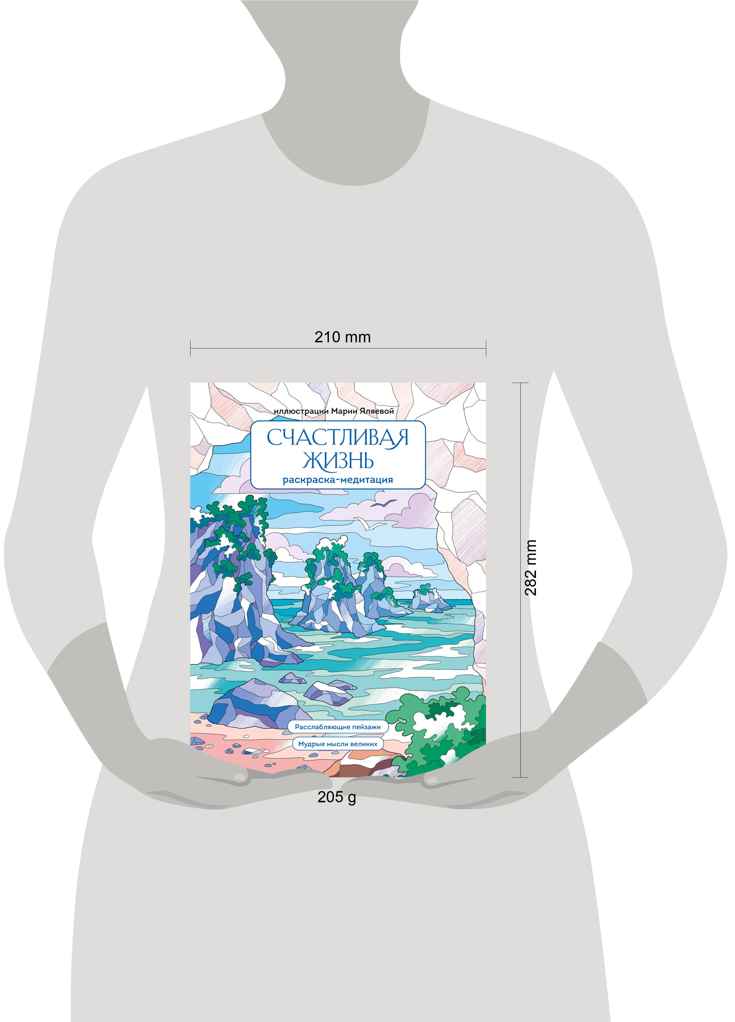 Аннотация: Счастливая жизнь. Раскраска-медитация. Расслабляющие пейзажи. Мудрые мысли великих