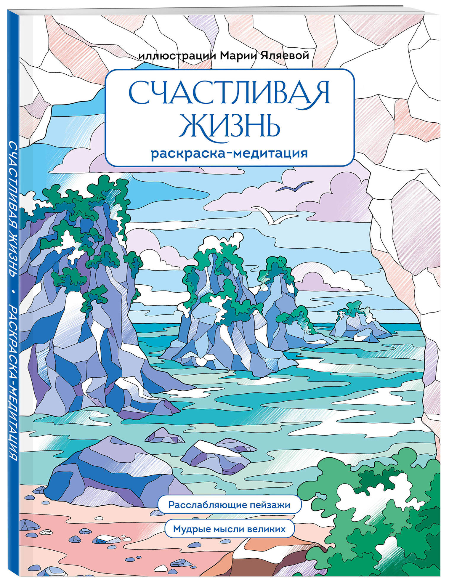 Счастливая жизнь. Раскраска-медитация. Расслабляющие пейзажи. Мудрые мысли великих