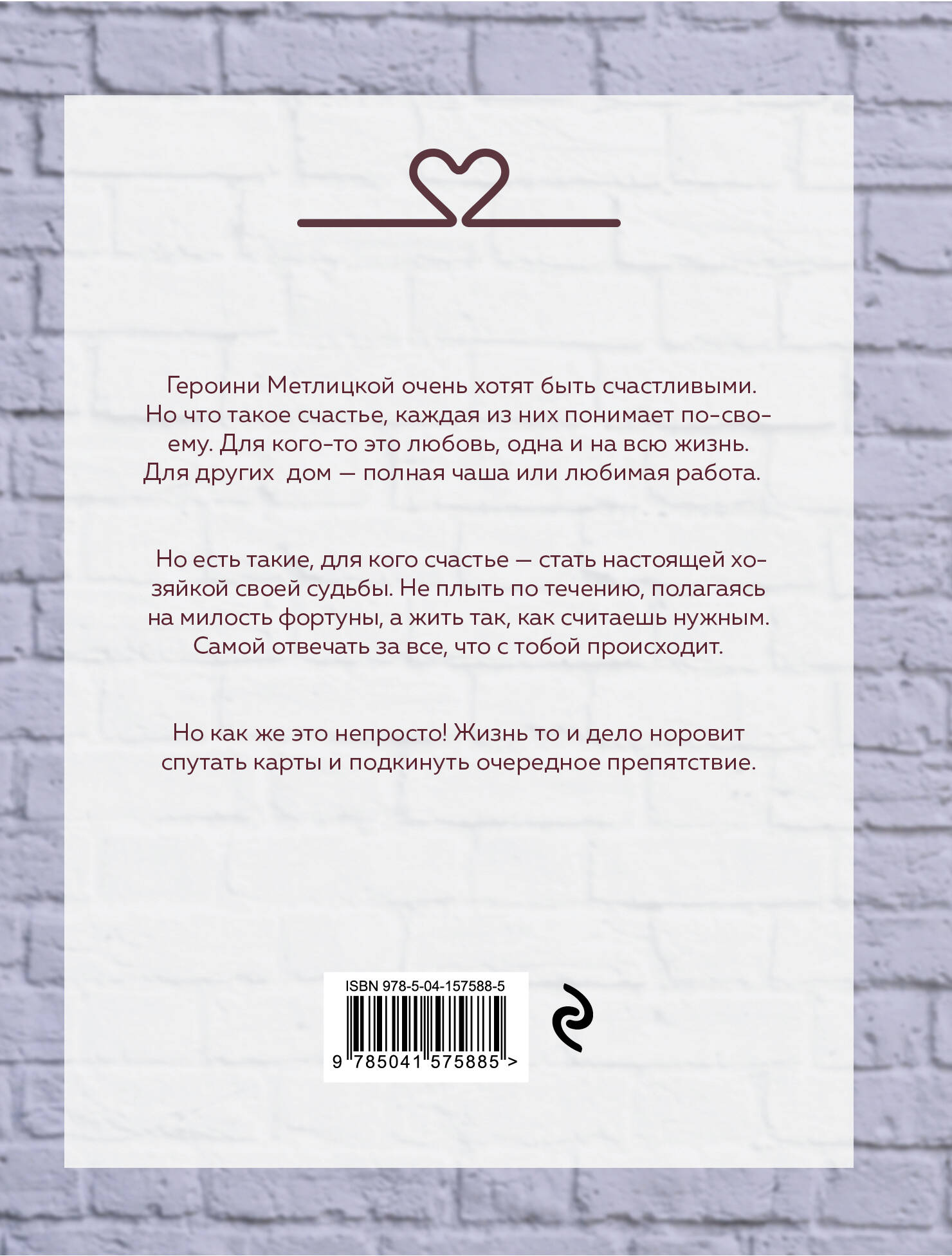 Общий тираж книг Марии Метлицкой сегодня приближается к 3 млн, и каждую новинку с нетерпением ждут десятки тысяч читательниц. И это объяснимо - ведь прочитать ее книгу - все равно что поговорить за чашкой чая с близкой подругой, которой можно все-все рассказать и в ответ выслушать искренние слова утешения и поддержки. Героини Метлицкой очень хотят быть счастливыми. Но что такое счастье, каждая из них понимает по-своему. Для кого-то это любовь, одна и на всю жизнь. Для других дом - полная чаша или любимая работа. Но есть такие, для кого счастье - стать настоящей хозяйкой своей судьбы. Не плыть по течению, полагаясь на милость фортуны, а жить так, как считаешь нужным. Самой отвечать за все, что с тобой происходит. Но как же это непросто! Жизнь то и дело норовит спутать карты и подкинуть очередное препятствие.| Издательство | ООО "Издательство "Эксмо" |