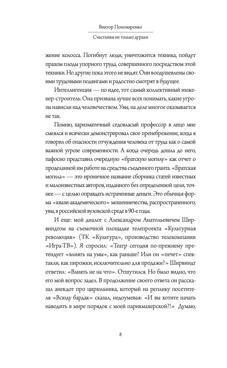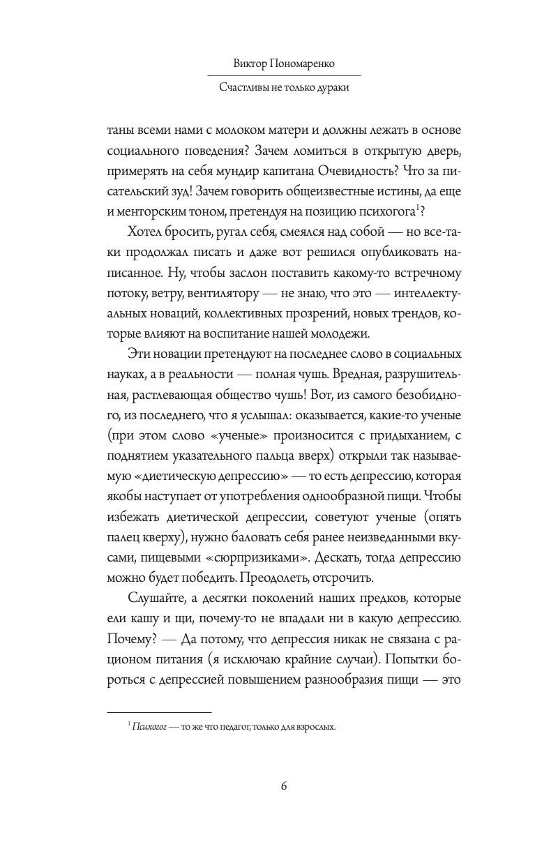 «Счастливы не только дураки: как разобраться в людях и в себе. Механизмы поведения» - практическое руководство Виктора Пономаренко, врача-психиатра и психолога с 30-летним опытом, по повышению качества жизни. Автор собрал подробные ответы и рекомендации на разные темы о взаимоотношениях, о социальном окружении, идеологии, любви и семье. Главная цель этой книги - научиться чувствовать себя счастливым и реализованным (или не чувствовать себя грустным и разочарованным), живя в современном обществе.