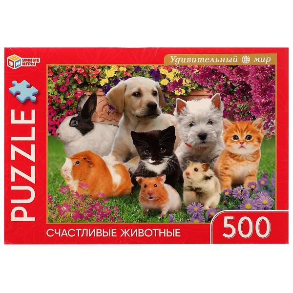 Счастливые животные. Удивительный мир. Пазлы классические в кор. Пазл 500 дет. Умные игры в кор.10шт