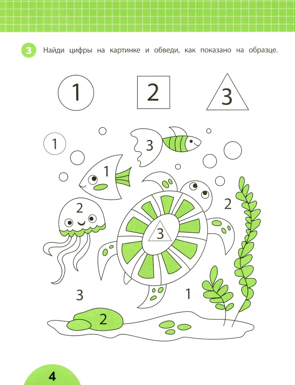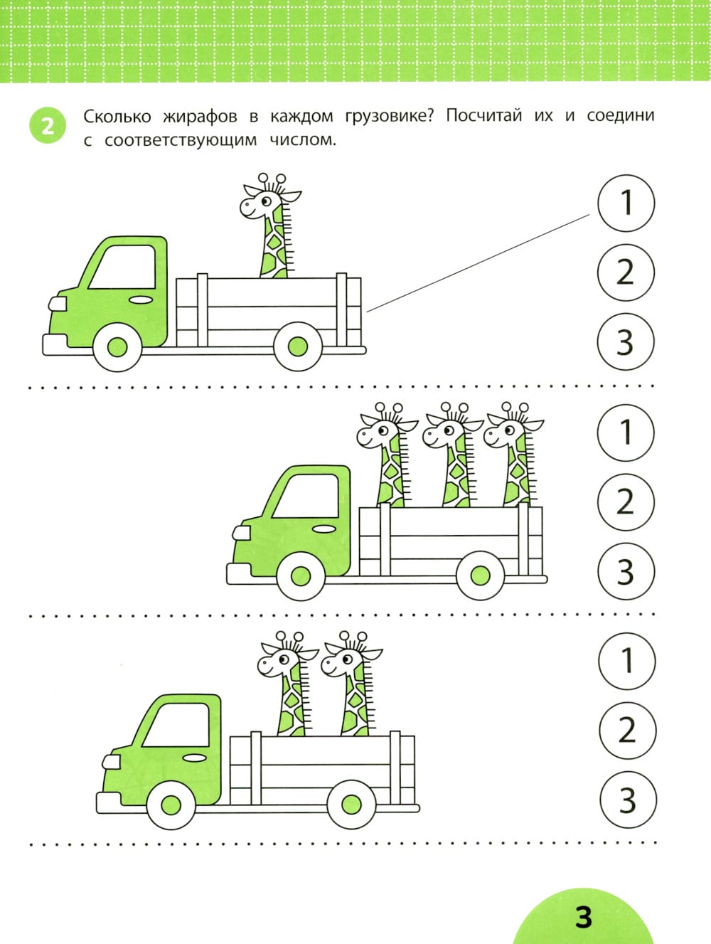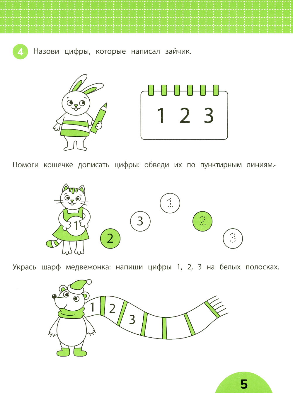 Выполняя задания, ребёнок легко и просто научится считать, соотносить количество предметов с числом, закрепит образ цифры и не будет путать написание цифр (1 и 7, 2 и 5, 3 и 8, 6 и 9).