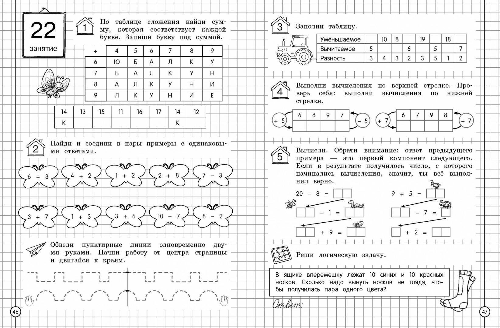 Тренажер преследует две цели: не только научить первоклассника считать без ошибок, но и мыслить логически. Для этого разработаны задания разного уровня сложности по всем основным разделам программы 1 класса. Все они требуют применения навыков анализа, классификации и сравнения, а также использования знаний в нестандартных ситуациях. Уникальность этого тренажера, созданного с учетом требований ФГОС начального общего образования, заключается в комбинировании заданий и оригинальной подаче материала. Выполняя задания, ребенок будет: • легко решать примеры и текстовые задачи; • анализировать полученную информацию; • классифицировать и обобщать полученные данные; • разгадывать головоломки, рассуждая логически.| Издательство | Эксмо |