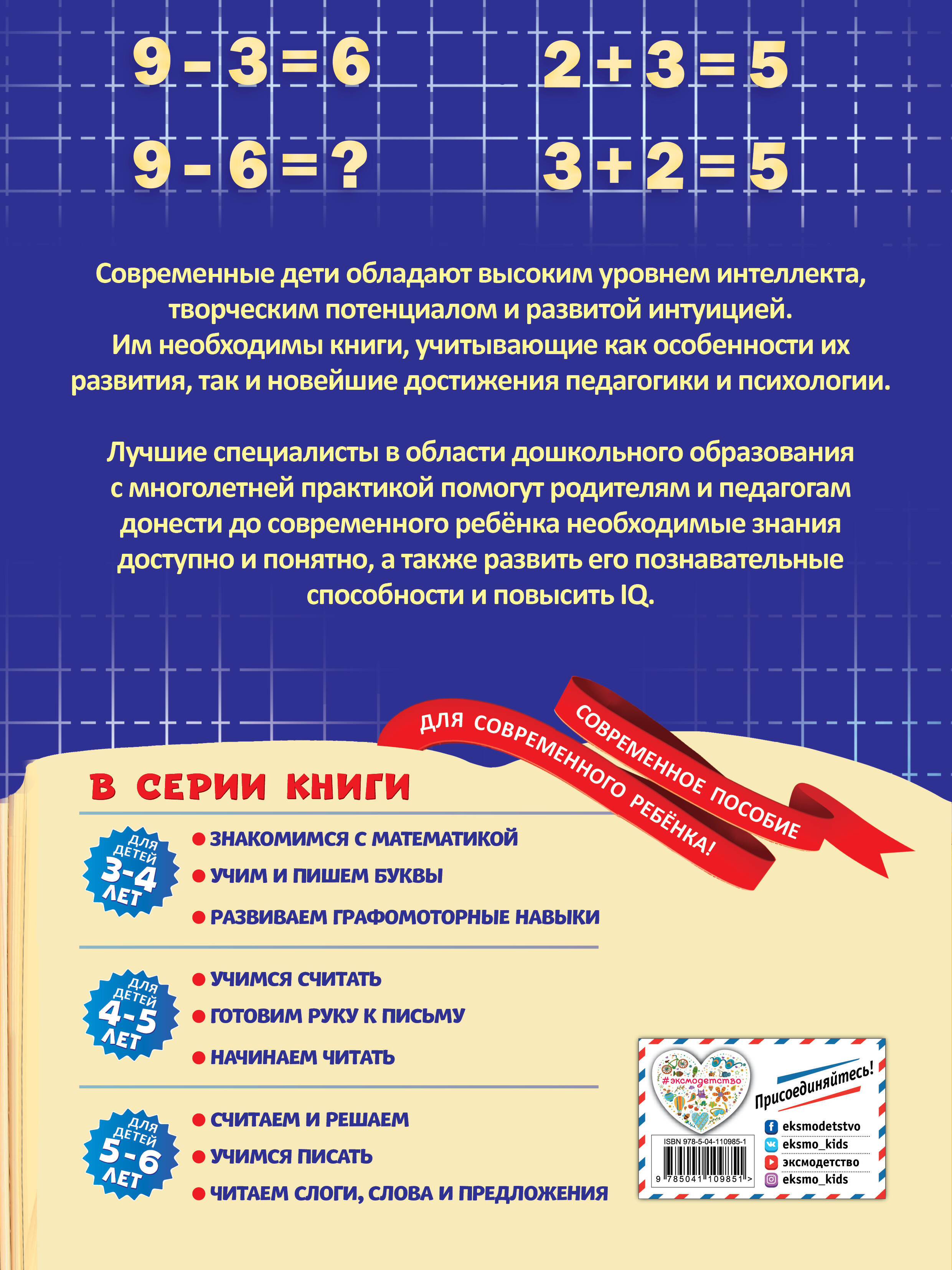 Современные дети активны, любознательны и обладают высоким уровнем интеллекта. Поэтому сейчас становятся актуальны обучающие пособия, учитывающие особенности развития так называемых новых детей. Используемая в книгах методика поможет дать современному ребенку необходимые знания быстро и просто. Она опирается на существующий опыт работы с новыми детьми. Для них усвоение новой информации - это игра. Все задания в книгах даны четко и конкретно, нет большого объема материала, который может наскучить ребенку и вызвать негатив. В книге только самое необходимое по заданной теме. Советы родителям помогут взрослым лучше ориентироваться в сути заданий и дадут возможность заниматься с ребенком с максимальной пользой. Покупая эту книгу для своего ребенка, вы поможете ему: 1. освоить счет в пределах 20; 2. познакомиться с составом числа; 3. научиться решать примеры и задачи на сложение и вычитание; 4. потренироваться в сравнении чисел; 5. развить внимание, память, логическое мышление.| Издательство | ООО "Издательство "Эксмо" |
