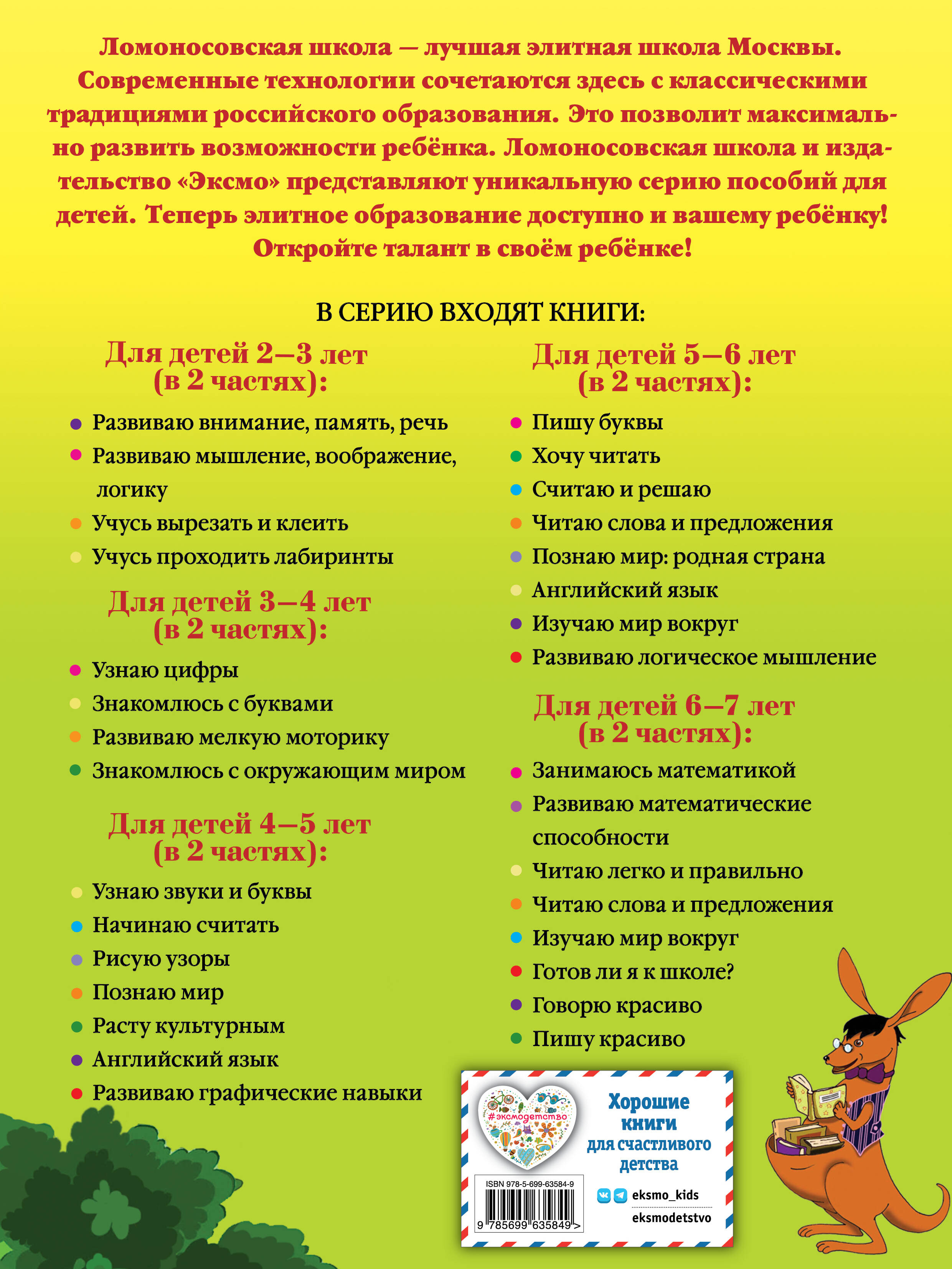 Ломоносовская школа - лучшая элитная школа Москвы. Современные технологии сочетаются здесь с классическими традициями российского образования. Это позволяет максимально развить возможности ребенка. Издательство «Эксмо» и Ломоносовская школа представляют уникальную серию пособий для детей. Теперь элитное образование доступно и вашему ребенку! Откройте талант в своем ребенке!| Издательство | Эксмо |