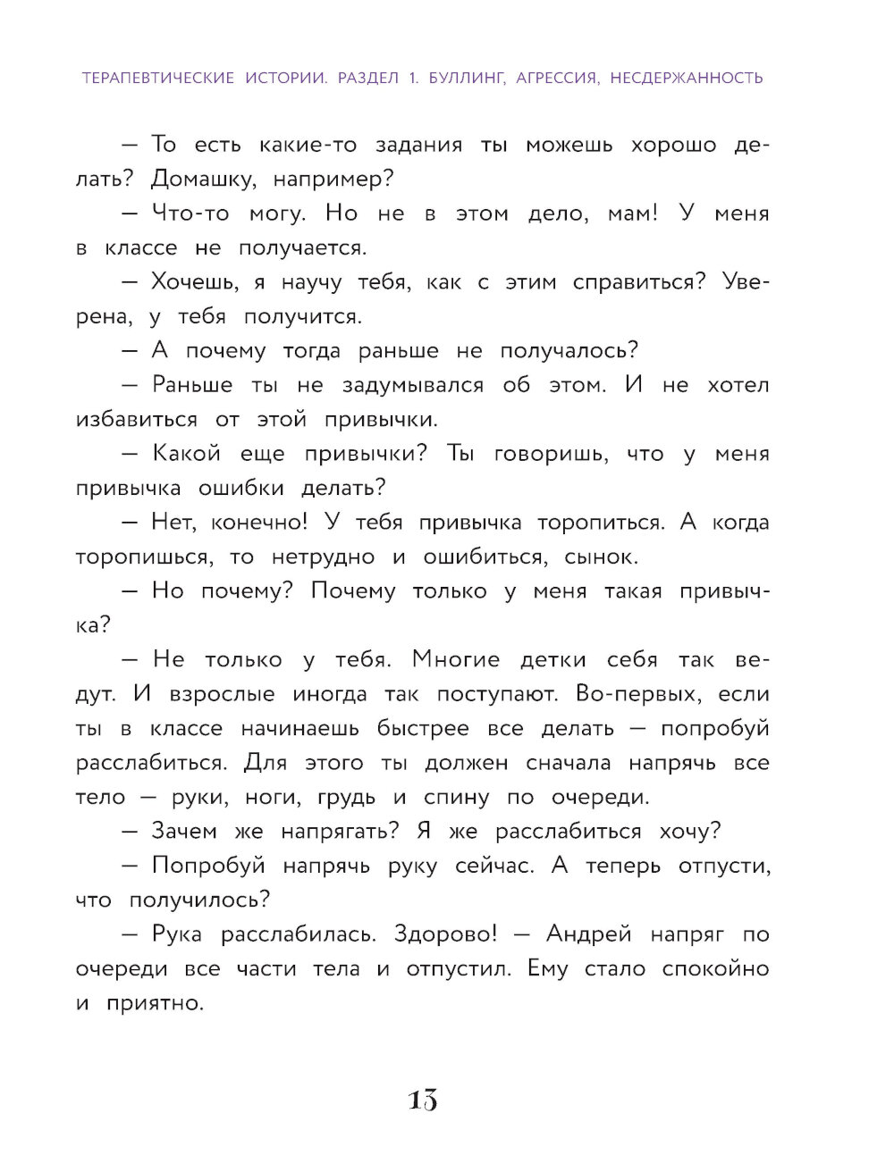 В книге представлены терапевтические сказки, в которых главный герой (так похожий на вашего ребенка) попадает в сложную ситуацию, сталкивается с проблемой - страх темноты, застенчивость, лишний вес и другие. Рецепт правильного поведения, который дает сказка, может быть затем использован ребенком для того, чтобы разрешить уже свою проблему, выход из которой он не может найти сам. Кроме встроенных советов ребенку, в этих историях есть определенная канва диалога с матерью, отцом, бабушкой или другом, которая поможет близким людям выстраивать позитивное и поддерживающее общение с ребенком.| Издательство | Эксмо |