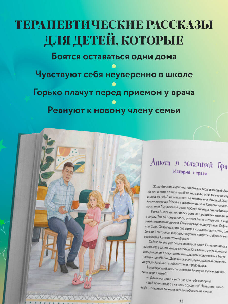 Новая книга серии включает в себя 22 увлекательных терапевтических рассказа, написанных для поддержки детей в возрасте от 5 до 10 лет. Темы историй: появление нового малыша в доме, страх оставаться дома одному, неуверенность в себе и неудачи в школе, страх перед врачами и больницами. Главный герой (так похожий на вашего ребёнка) сталкивается с аналогичными проблемами и помогает юному читателю понять, что он не один в этом мире со своими трудностями, что выход есть - стоит только попробовать примерить на себя действия персонажа истории - и всё получится! Эта книга поможет взрослым общаться с ребёнком так, чтобы он их услышал: рассказ строится через присоединение к ребёнку и его проблеме, создавая единый мир, в котором мать или отец, дочь или сын говорят друг с другом на одном языке - языке историй.| Издательство | ООО "Издательство "Эксмо" |
