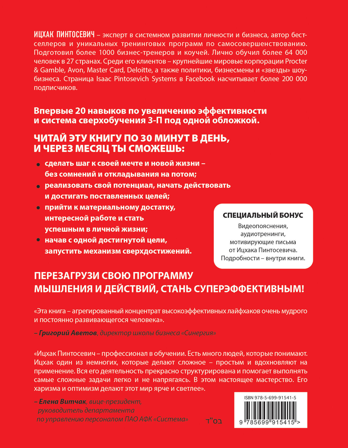 Как автомобилю необходим периодический техосмотр, так человеку нужна перезагрузка. Эта книга-тренинг за 30 дней поможет вам перезагрузить программы мышления и действий. К каждой главе есть видеопояснения от Ицкаха, а также7 аудиозаписей по 30 минут и бланки для заполнения. Вы научитесь решать, планировать и действовать. В результате скорость движения увеличится в разы. А вместе с ней и скорость достижений, то есть ваша эффективность.| Издательство | ООО "Издательство "Эксмо" |
