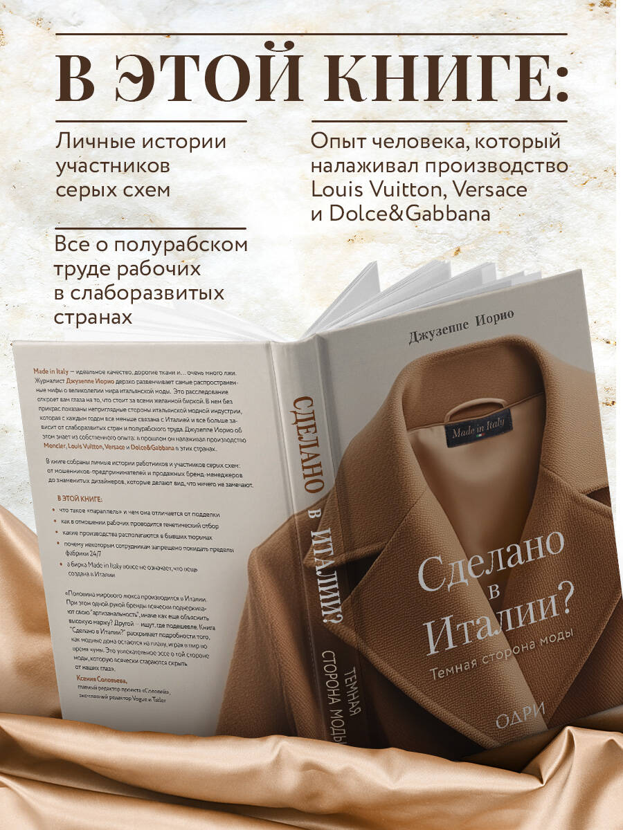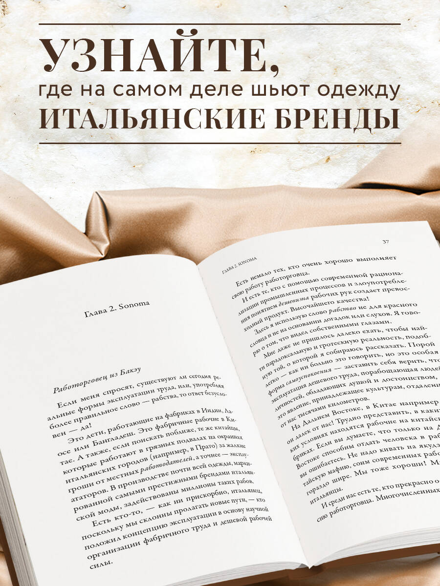Made in Italy - идеальное качество, дорогие ткани и… очень много лжи. Журналист Джузеппе Иорио дерзко развенчивает самые распространенные мифы о великолепии мира итальянской моды. Это расследование откроет вам глаза на то, что стоит за всеми желанной биркой. В нем без прикрас показаны неприглядные стороны итальянской модной индустрии, которая с каждым годом все меньше связана с Италией и все больше зависит от слаборазвитых стран и полурабского труда. Джузеппе Иорио об этом знает из собственного опыта: в прошлом он распределял заказы Moncler, Louis Vuitton, Versace и Dolce&Gabbana в этих странах. В книге собраны личные истории работников и участников серых схем: от мошенников-предпринимателей и продажных бренд-менеджеров до знаменитых дизайнеров, которые делают вид, что ничего не замечают. В ЭТОЙ КНИГЕ: - что такое «параллель» и чем она отличается от подделки; - как в отношении рабочих проводится генетический отбор; - какие производства располагаются в бывших тюрьмах; - почему некоторым сотрудникам запрещено покидать пределы фабрики 24/7; - а бирка Made in Italy вовсе не означает, что вещь создана в Италии.| Издательство | ООО "Издательство "Эксмо" |