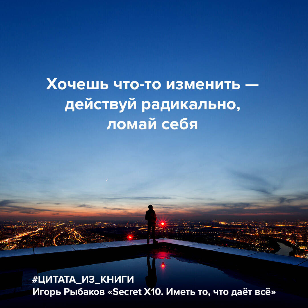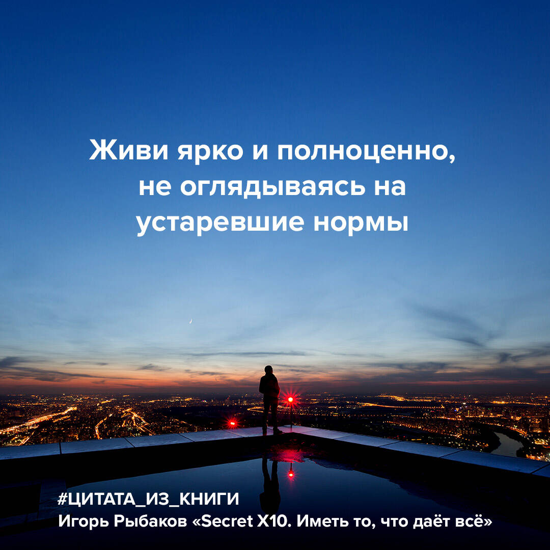 Бог где-то рядом... И я живу, чтобы находить Бога в людях и, удивляясь, находить его в себе. "Все, что я делаю, так или иначе связано с Единой целью Х10. Я давно понял, что замысленное мной в одиночку сделать невозможно, поэтому те, кто преследуют цели Х10, становятся моими учениками, партнерами и друзьями. У нас разные интересы, но единая цель, и потому мы действуем слаженно и точно, превосходя других без чрезмерных усилий. Успех - это один из результатов процесса под названием жизнь. Я дам тебе секретный ингредиент, чтобы твой результат стал именно таким. Я хочу, чтобы ты примерил на себя, каково это - быть одним из тех, кто вместе со мной стремится к единой цели и владеет секретом, СЕКРЕТОМ X10!" Игорь Рыбаков - гранд-мастер, открывший и записавший для людей Религию ЧистоТы и Учение Х10, физик, филантроп, миллиардер, автор и музыкант. Соучредитель RYBAKOV UNIVERSITY: цель - повлиять на изменение качества жизни миллиарда людей к 2030 году.| Издательство | ИЗДАТЕЛЬСТВО "АСТ" |