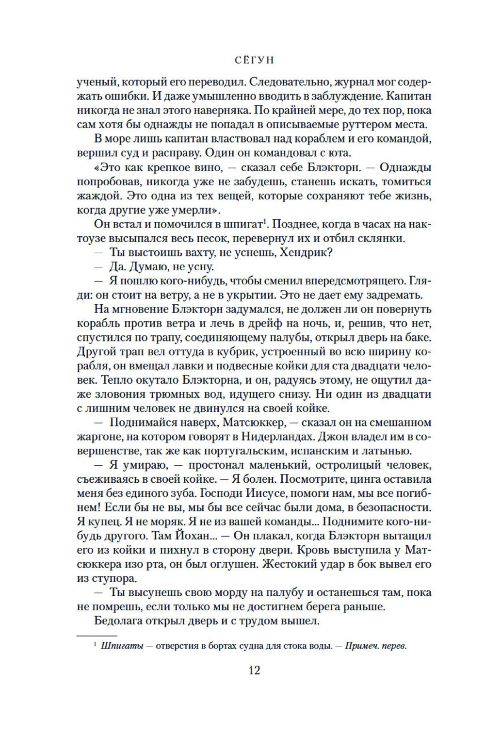 Начало XVII века. Голландское судно терпит крушение у берегов Японии. Выживших членов экипажа берут в плен и обвиняют в пиратстве. Среди попавших в плен был и англичанин Джон Блэкторн, прекрасно знающий географию, военное дело и математику и обладающий сильным характером. Их судьбу должен решить местный правитель, прибытие которого ожидает вся деревня. Слухи о талантливом капитане доходят до князя Торанага-но Миновара, одного из самых могущественных людей Японии. Торанага берет Блэкторна под свою защиту, лелея коварные планы использовать его знания в борьбе за власть. Чтобы выжить в чужой стране, англичанин изучает ее язык и обычаи, становится самураем, но его не покидает мысль, что когда-нибудь ему все-таки удастся вернуться на родину...| Издательство | Азбука |