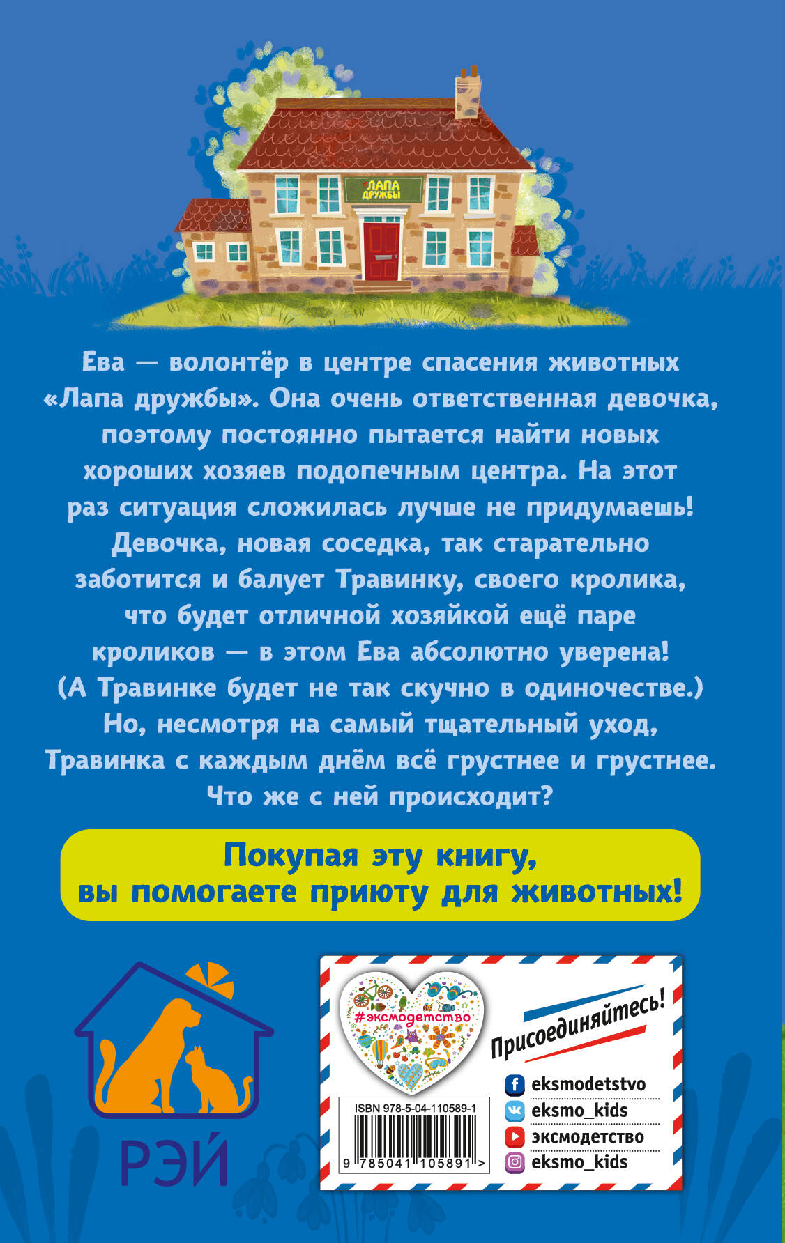 1. Мия, хозяйка кролика Травинки, очень любит свою питомицу. Она заботливая и внимательная хозяйка. Но почему-то Травинка с каждым днем всё грустнее и грустнее. Что же с ней происходит? 2. Если вы когда-нибудь хотели узнать, как работает центр спасения животных, - вам сюда! Ева и её брат Карл поделятся не только радостями общения со множеством зверей, но и трудностями ухода за ними! 3. Белая бумага, очаровательные иллюстрации, небольшой текст, крупный шрифт - подходит для тех, кто только учится читать! 4. Каждая история рассказывает не только о помощи животному, но и является детективом с логикой, понятной ребёнку. 5. Покупая эти книги, вы помогаете настоящему благотворительному фонду! «Лапа Дружбы» - это одна из программ Фонда помощи бездомным животным «РЭЙ»!| Издательство | ООО "Издательство "Эксмо" |