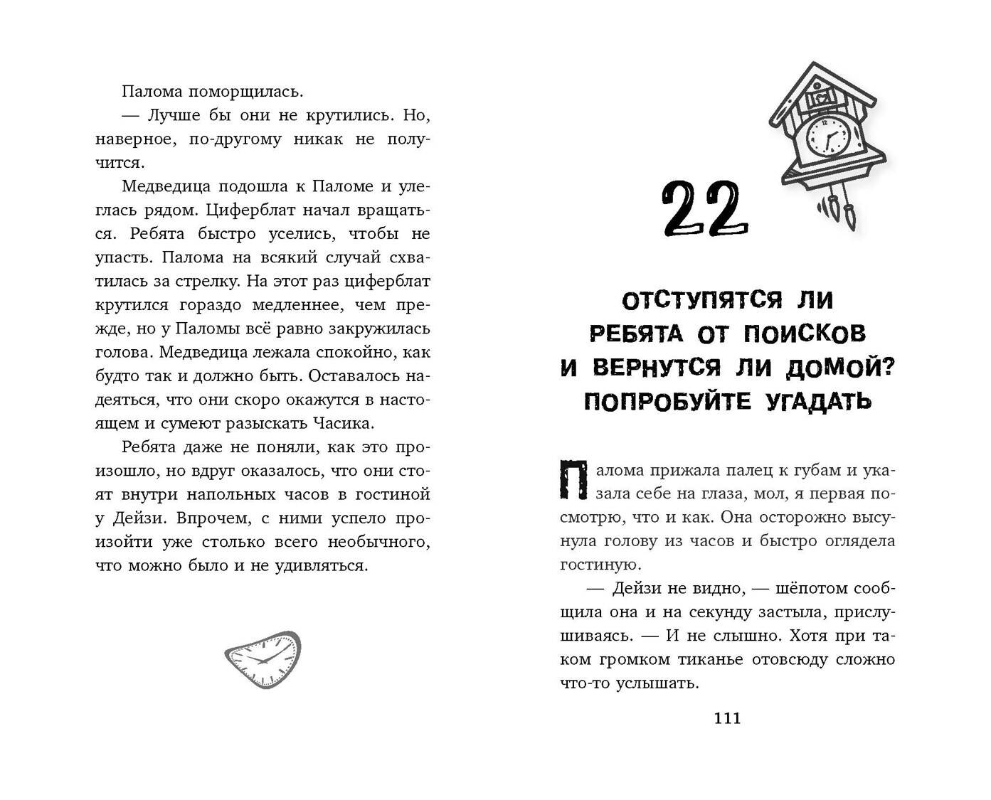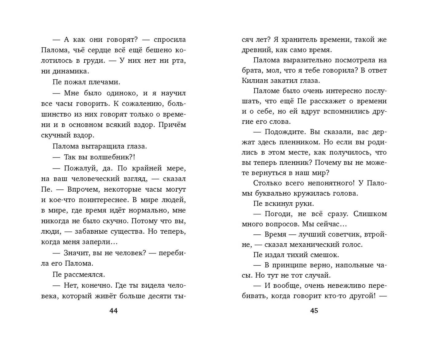 Для поклонников путешествий во времени и добрых историй! Палома и её младший брат Киллиан не должны были заходить в дом на краю улицы. Не должны были заглядывать в старинные напольные часы. Не должны были сердить хозяйку. Но любопытство взяло вверх. Зачем здесь так много часов? Какой секрет хранит этот зловещий дом и его обитательница? Связана ли она с исчезновением детей в этом городке? Мел Хартман - известная бельгийская писательница, обладательница нескольких литературных наград. Она - автор захватывающих книг для детей, и её истории в жанре фантастики и фэнтези помогают разобраться с вопросами, которые волнуют многих. Как справиться с кошмарами, как совладать со страхами, как быть честным с собой. Книга заинтересует фанатов российского бестселлера «Часодеи» и серии романов «Таймлесс». Обложка нарисована известной художницей Марией Огонёк. Книга подойдёт для детей от 7 лет.| Издательство | ООО "Издательство "Эксмо" |