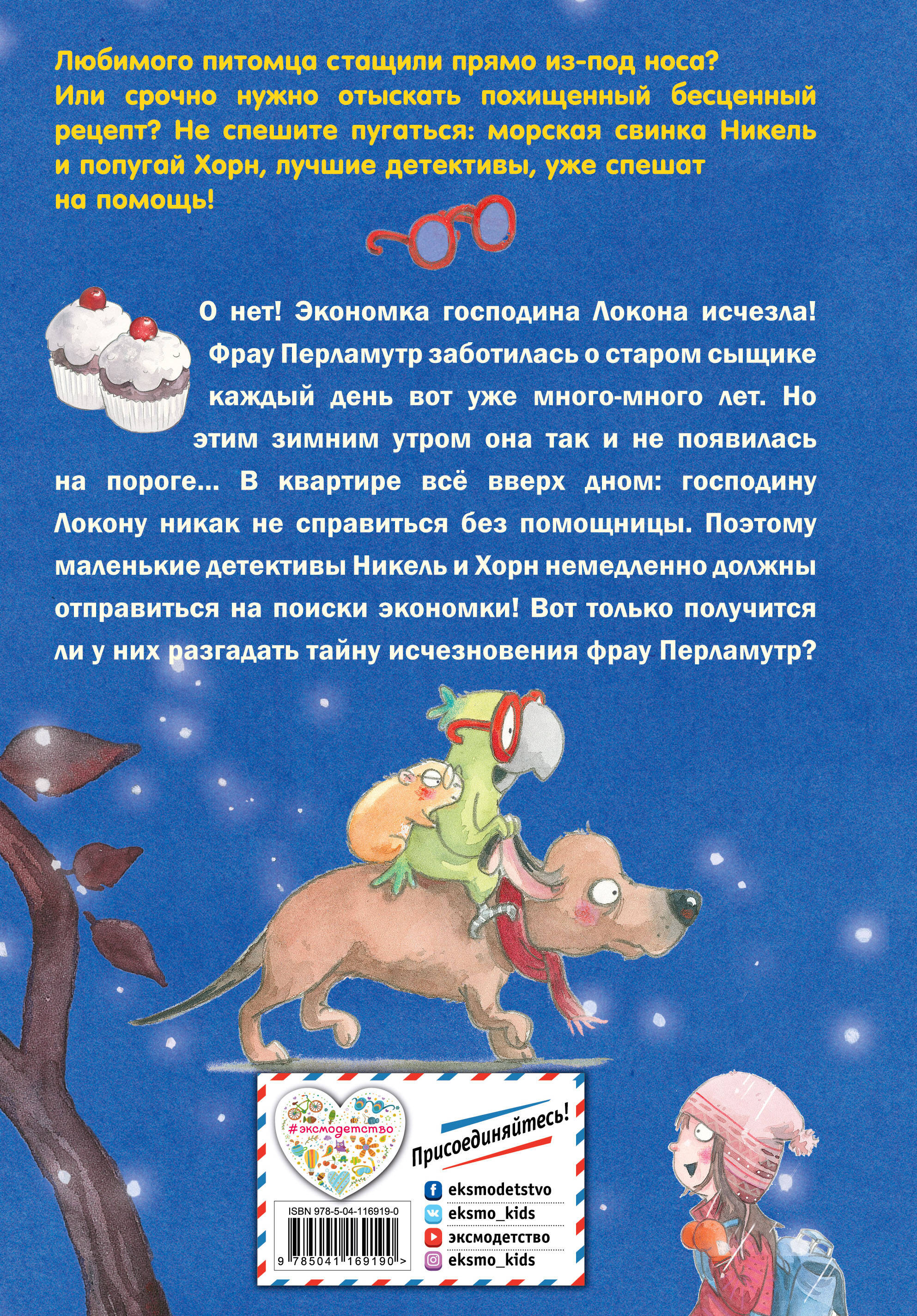Вот уже много-много лет о господине Локоне, любимом хозяине Никель и Хорна, заботится экономка. Не было ни дня, чтобы фрау Перламутр не заглянула к старому сыщику! Но этим зимним утром произошло неслыханное событие: фрау Перламутр не пришла. О нет! В квартире переполох и бардак! Как господин Локон справится без своей помощницы? И вдруг фрау Перламутр попала в беду? Морская свинка Никель и попугай Хорн, бесстрашные детективы, немедленно выдвигаются на поиски пропавшей экономки! Эта книга прекрасно подойдёт как для первого самостоятельного чтения, так и для чтения вслух: захватывающий сюжет, крупный шрифт и большой формат. Много юмора и забавных, милых иллюстраций - читать будет по-настоящему весело! Серия про маленьких детективов Никель и Хорна вошла в ТОП-30 лучших детских и подростковых книг по мнению жюри престижной литературной премии Leipziger Lesekompass 2018.| Издательство | ООО "Издательство "Эксмо" |
