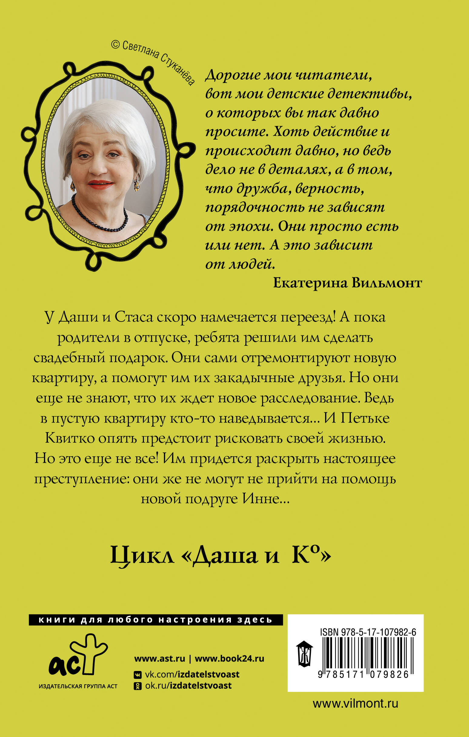 У Даши и Стаса скоро намечается переезд! А пока родители в отпуске, ребята решили им сделать свадебный подарок. Они сами отремонтируют новую квартиру, а помогут им их закадычные друзья. Но они еще не знают, что их ждет новое расследование. Ведь в пустую квартиру кто-то наведывается... И Петьке Квитко опять предстоит рисковать своей жизнью. Но это еще не все! Им придется раскрыть настоящее преступление: они же не могут не прийти на помощь новой подруге Инне...