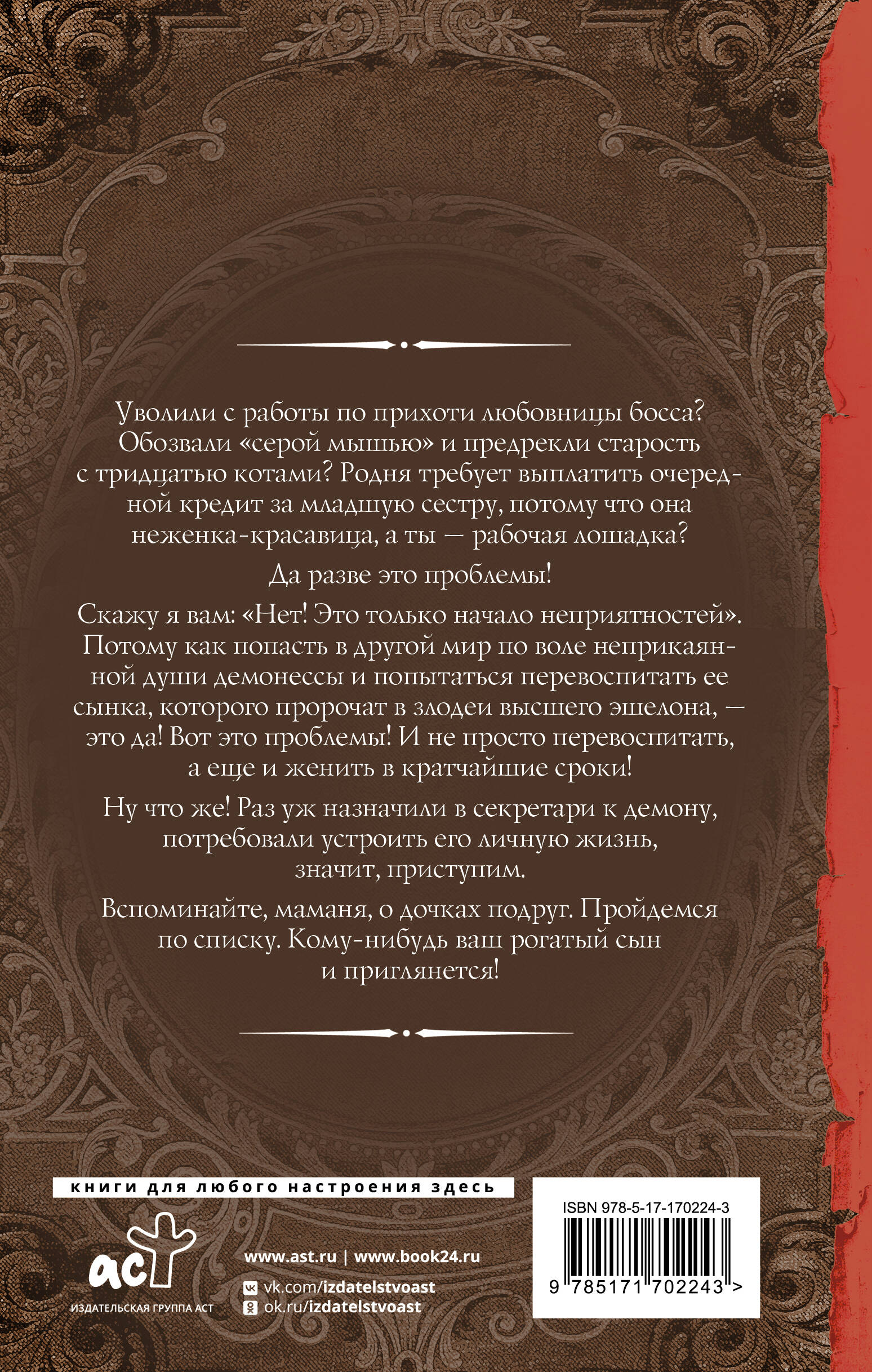 - Новинка от признанного мастера фэнтези с изумительным чувством юмора. - Лучшая книга Марии Лунёвой по мнению читателей Литнет. - Юмористическое фэнтези о попытках найти невесту для сварливого демона. Реалистичные герои, необычная любовная линия и мир, который интересно исследовать. - Выбор поклонников книг Александры Лисиной, Лидии Милениной, Франциски Вудворт. - Серия «Необыкновенная магия. Шедевры Рунета» - интернет-бестселлеры современных авторов фэнтези.| Издательство | Издательство "АСТ" |