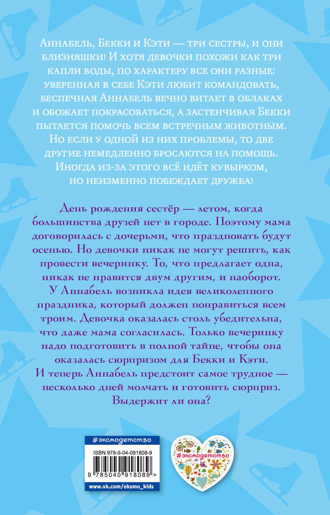 1. Каждая книга серии рассказывает о приключении с точки зрения одной из сестёр! И каждая сестра решает проблему, вставшую именно перед ней! Например, в этой книге Аннабель пытается научиться сдержанности! 2. Мы часто хотим оказаться на чужом месте или повести себя не так, как характерно нам. Например, в каких-то ситуациях быть чуточку смелее или чуточку серьёзнее, а может, даже бесшабашнее. Сёстры-тройняшки этой серии - прекрасная иллюстрация того, как внешне похожие девчонки могут быть абсолютно разными по характеру. А какая из них похожа на тебя? И на какую ты хотела бы быть похожа сама? Книга поможет узнать! 3. Истории Холли Вебб всегда позитивные и жизнеутверждающие, а героини её книг заряжают оптимизмом и верой в себя! Можно сказать, что сейчас настоящая «холливеббомания» - дети разного возраста обожают истории Холли Вебб о зверятах, её детективные книги о Мейзи Хитчинс, приключения Роуз и Лили в мире волшебников, книги о шалостях щенка Проказника и другие. 4. Эта серия учит заботе о друг друге, ответственности и умению решать непростые ситуации. 5. Идеальна для родителей, которые хотят, чтобы дети втянулись в чтение.