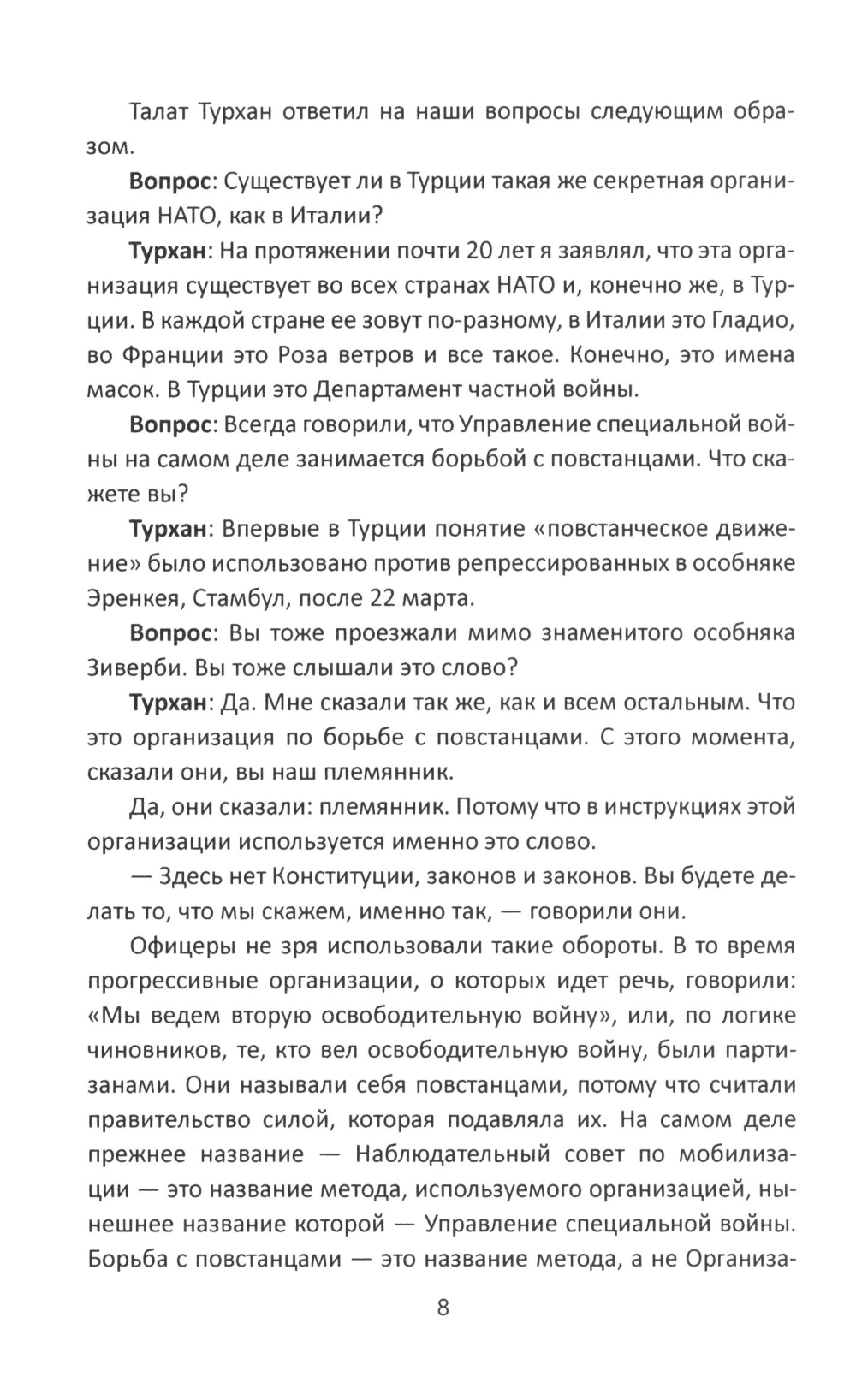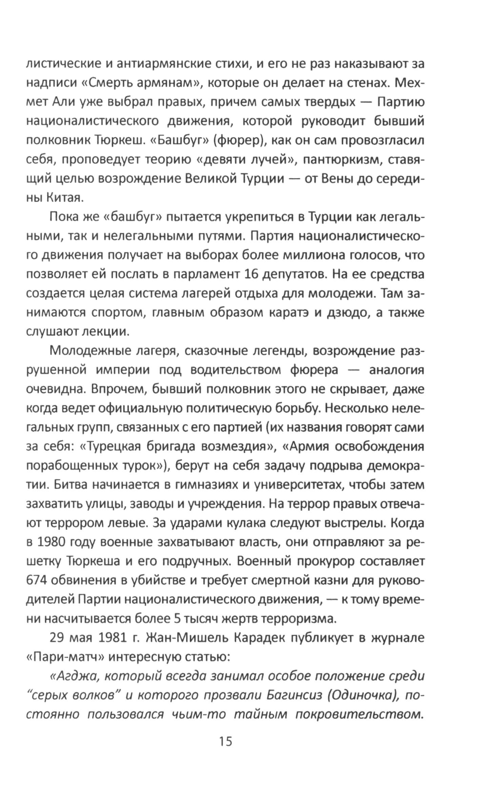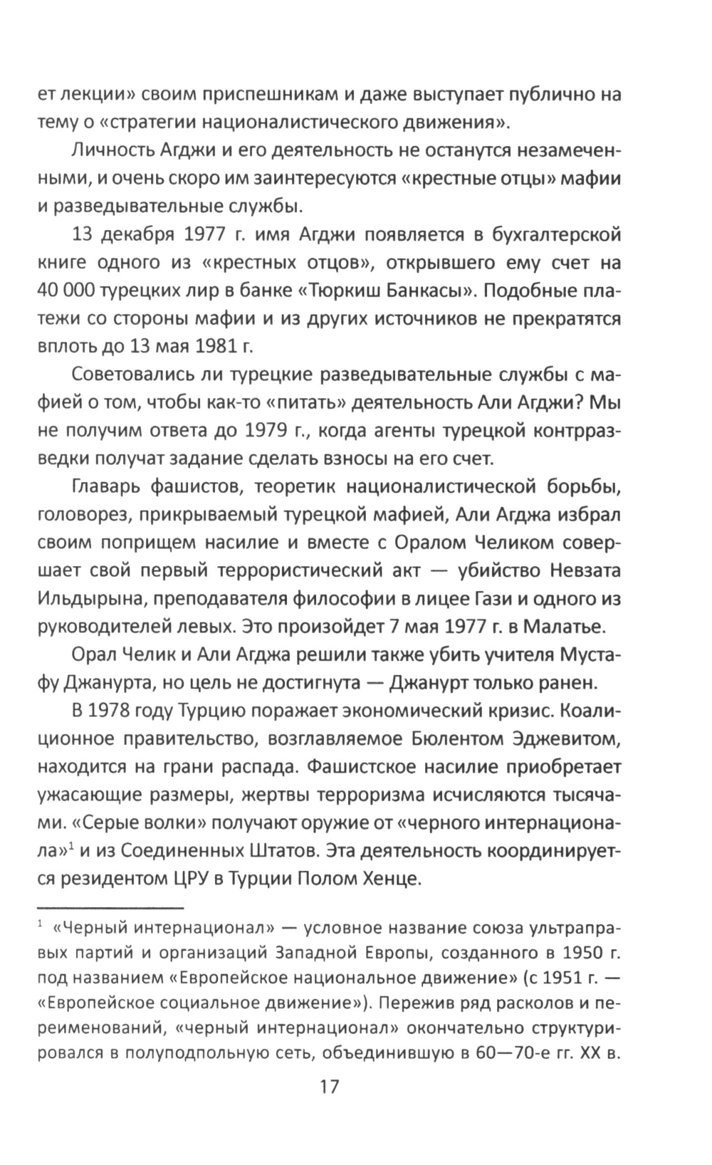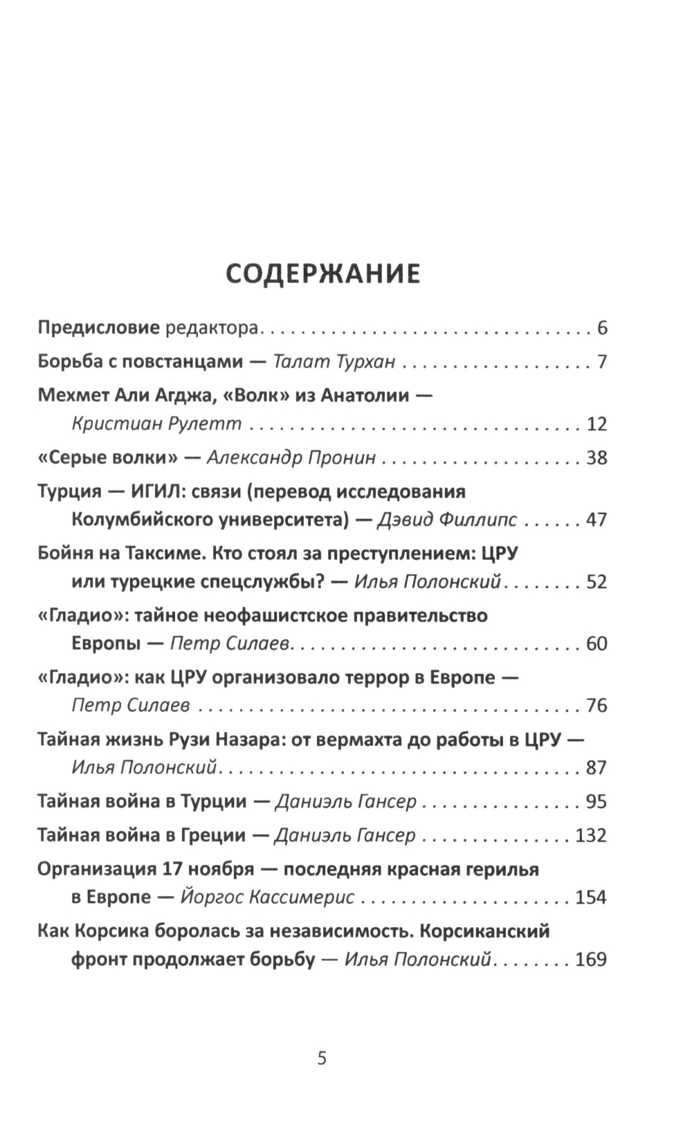 Книга повествует о той страшной и кровавой борьбе, которая развернулась в семидесятые годы прошлого века между правыми проамериканскими силами и левыми партизанами в Средиземноморье. В ходе этой борьбы на стороне НАТО последовательно выступали европейские неонацисты и ультра-правая турецкая террористическая организация «Серые волки» (Боз Курт), исламские и христианские фундаменталисты. Книга рассказывает о том, как ЦРУ и Ми-6 финансировали терроризм в Турции и Южной Европе для противостояния «красной угрозе». Книга охватывает деятельность ультралевых и ультраправых политических организаций в Турции, Греции, в Италии и на Корсике.| Издательство | Родина |