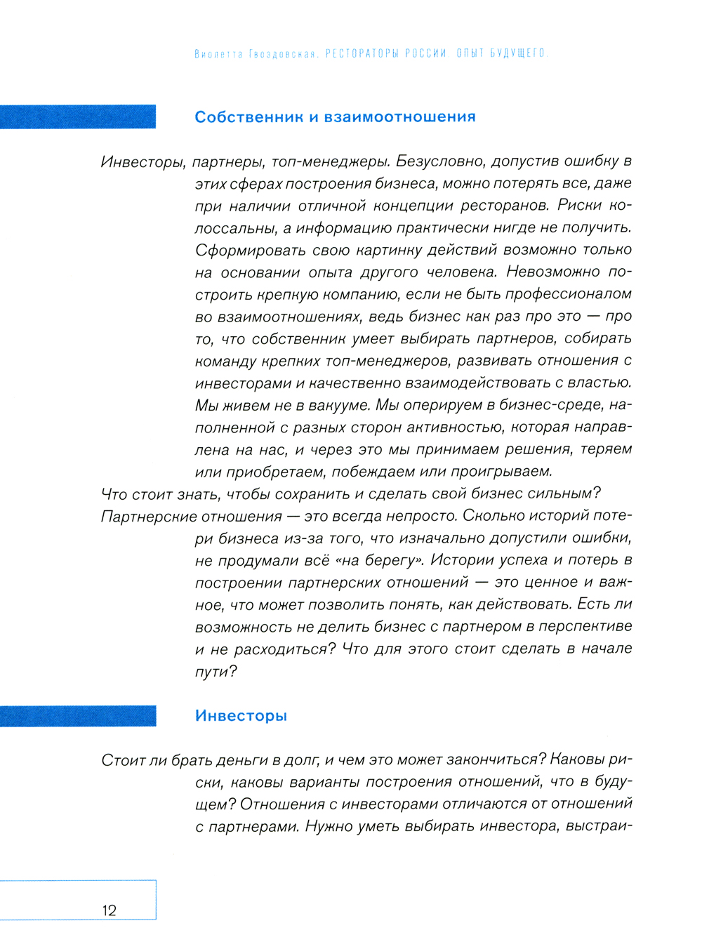 Вы держите в руках опыт ведущих рестораторов страны, исключительный, честный и практический материал. Денис Иванов, г. Новосибирск, Алексей Горенский, г. Красноярск, Игорь Крупицкий, г. Калининград, Павел Кашников и Алексей Новиков, г. Ярославль, Максим Коновалов, г. Ижевск, Евгений Реймер, г. Самара, Айрат Гарипов, г. Казань, Максим Мирсиянов, г. Нижний Новгород, Кирилл Шлаен, г. Екатеринбург, Георгий Хвистани, г. Сочи открыто высказались о самых актуальных темах. За ними стоят большие ресторанные компании, долгий срок работы, огромный накопленный опыт. В этой книге они делятся рекомендациями и прогнозами развития ресторанного бизнеса. Виолетта Гвоздовская, руководитель компании Welcomepro, смогла собрать все идеи предпринимателей в практический учебник, где в каждой главе вы увидите список решений, методик и лайфхаков каждого сильного, яркого, успешного ресторатора. Здесь вы прочтете мнение лучших, основанное на их реальном практическом опыте, по конкретным крайне актуальным вопросам, которые волнуют сейчас всё ресторанное сообщество. Эта книга для тех, кто хочет быть ресторатором и не понимает, с чем можно столкнуться на данном пути. Эта книга для тех, кто развивает свой ресторанный бизнес и хочет заглянуть в будущее. Учитесь на опыте успешных. Узнайте секреты их достижений.| Издательство | Ресторанные ведомости |