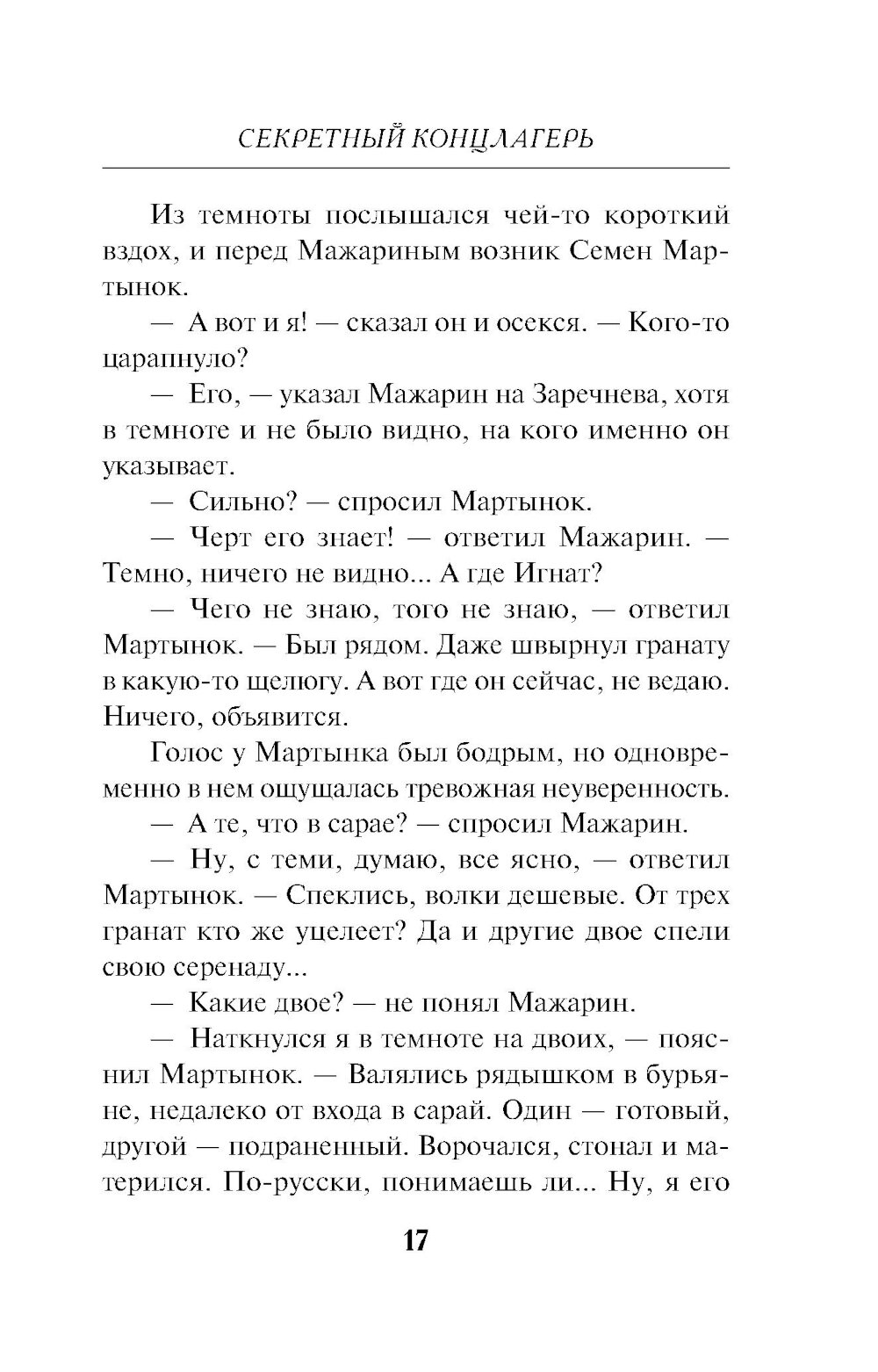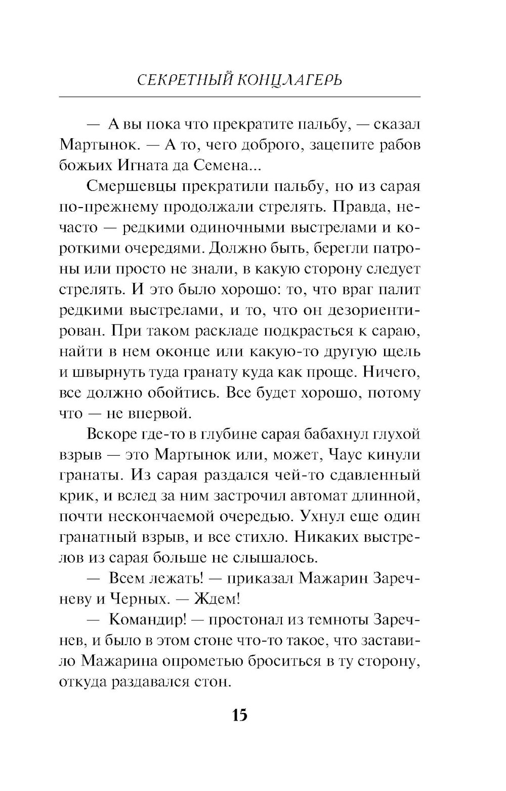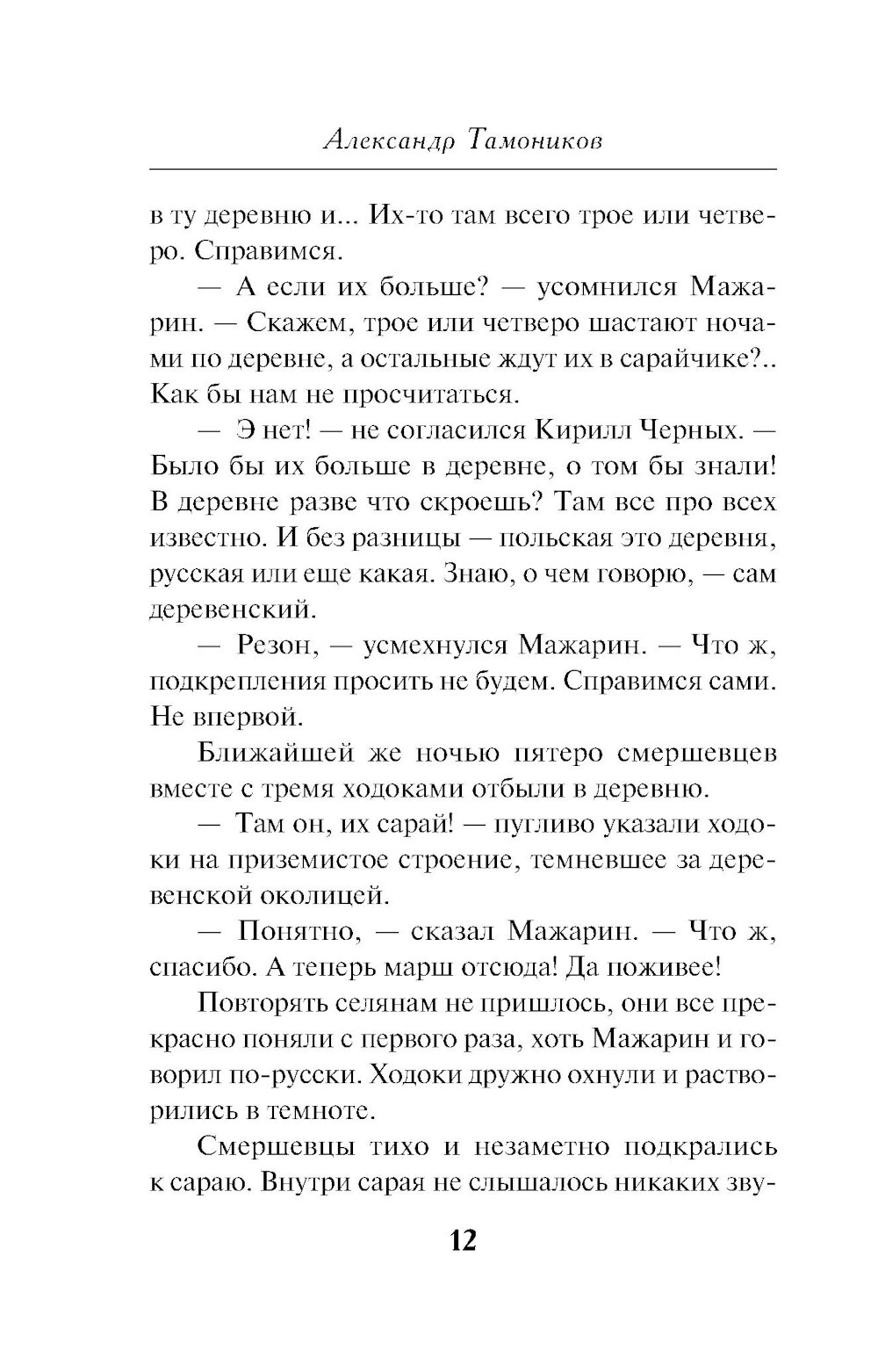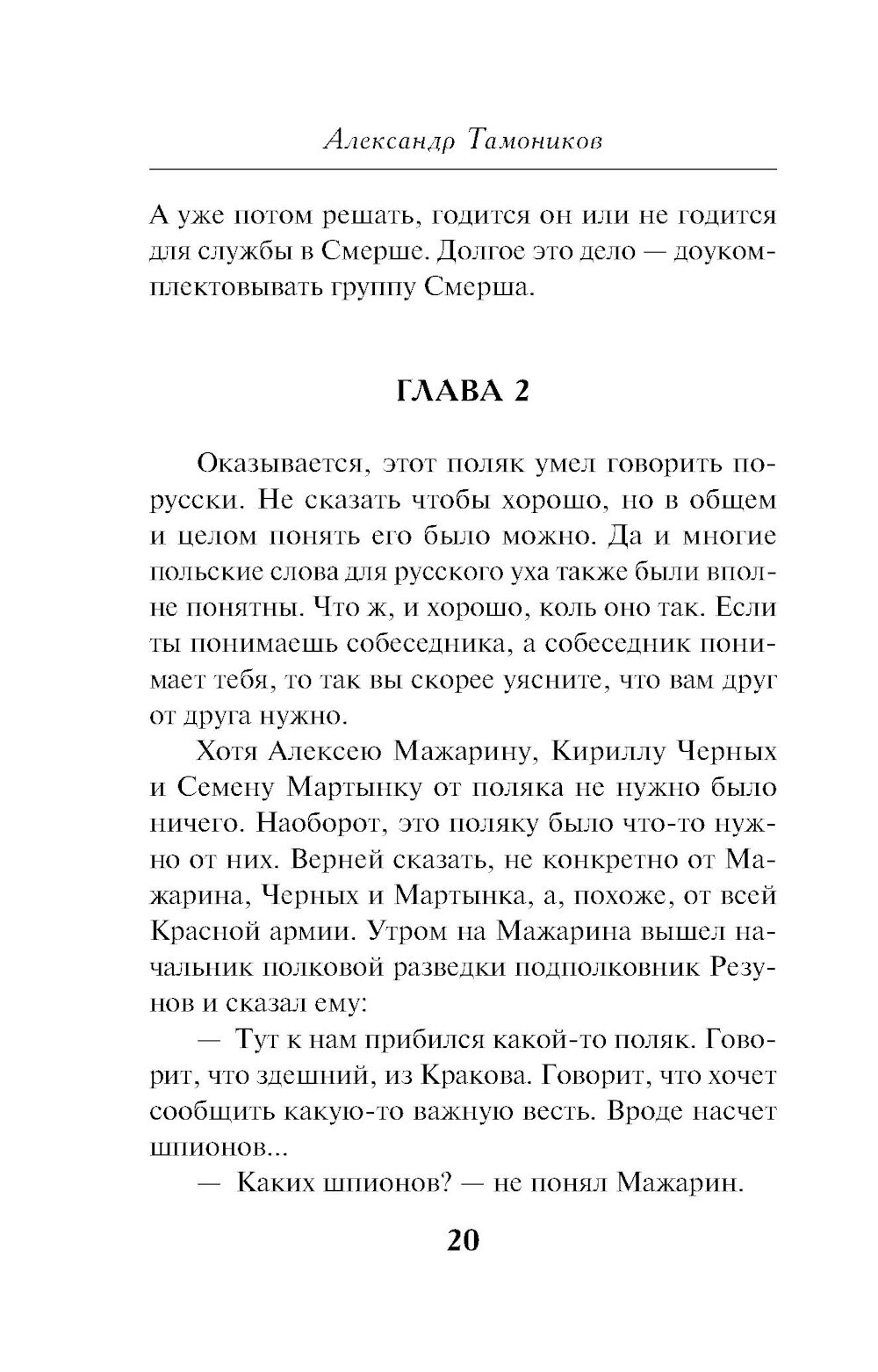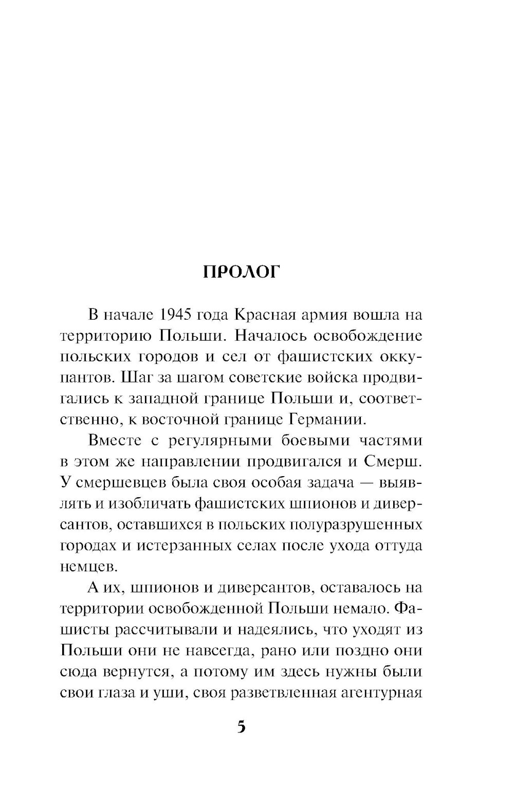 Самые интересные романы о сталинском спецназе - СМЕРШе. При освобождении Кракова контрразведке Красной Армии становится известно о существовании на территории Польши детского концлагеря. В нем врачи-изуверы проводят над маленькими пациентами опыты, добывая особые ферменты, из которых затем изготавливают препарат для омоложения. Группе СМЕРШа капитана Алексея Мажарина приказано выяснить, где именно располагается «фабрика смерти» и можно ли спасти уцелевших детей. Оперативники выясняют, что фашисты успели вывезти лагерь на территорию Германии. Капитан Мажарин идет следом. Однако вскоре становится ясно, что силами небольшой группы освободить пленников не удастся, нужно подкрепление. Но пока готовится десант, в лагере случается непредвиденное... «Смерть шпионам!» (СМЕРШ) - это короткое и беспощадное название носило особое подразделение НКВД, подчинявшееся И. Сталину. Созданное в годы войны, оно состояло из проверенных в бою, честных и бесстрашных офицеров Красной Армии. СМЕРШа боялись все - и фашистские лазутчики, готовящие диверсии в наших боевых порядках, и гитлеровские приспешники, действующие в глубоком советском тылу. Враг знал: если на его след напали бойцы сталинского спецназа, справедливого и скорого суда не избежать. Романы серии «СМЕРШ - спецназ Сталина» - это каждый раз увлекательный динамичный сюжет и новые исторические знания, это экшен, написанный простым и понятным языком.| Издательство | Эксмо |