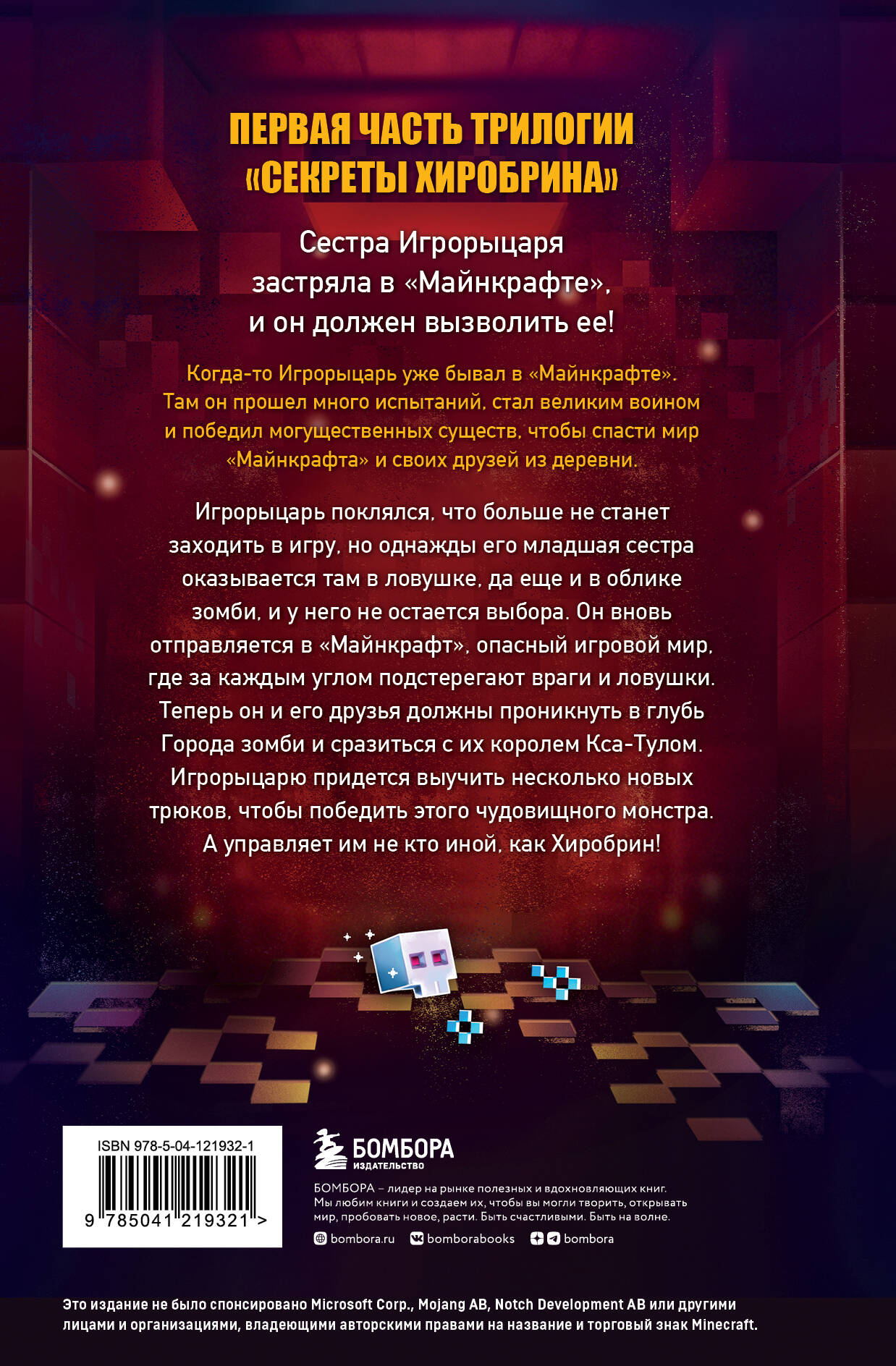 ПЕРВАЯ ЧАСТЬ ТРИЛОГИИ «СЕКРЕТЫ ХИРОБРИНА». Сестра Игрорыцаря застряла в «Майнкрафте», и он должен вызволить ее! Когда-то Игрорыцарь уже бывал в «Майнкрафте». Там он прошел много испытаний, стал великим воином и победил могущественных существ, чтобы спасти мир «Майнкрафта» и своих друзей из деревни. Игрорыцарь поклялся, что больше не станет заходить в игру, но однажды его младшая сестра оказывается там в ловушке, да еще и в облике зомби, и у него не остается выбора. Он вновь отправляется в «Майнкрафт», опасный игровой мир, где за каждым углом подстерегают враги и ловушки. Теперь он и его друзья должны проникнуть в глубь города зомби и сразиться с их королем Кса-Тулом. Игрорыцарю придется выучить несколько новых трюков, чтобы победить этого чудовищного монстра. А управляет им не кто иной, как Хиробрин!| Издательство | ООО "Издательство "Эксмо" |