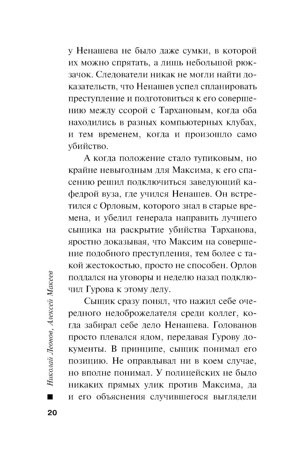 К полковнику МВД Льву Гурову обращается вдова бизнесмена Марина Запьянцева. Неизвестные похитили ее дочь и требуют солидный выкуп. Времени на сбор денег - всего сутки, при этом никаких контактов с правоохранительными органами, иначе девочка будет убита. Гуров понимает: для такого жесткого требования нужны серьезные основания, значит, преступники знакомы с семьей покойного бизнесмена. Сыщикам удается отследить путь автомобиля, на котором увезли ребенка, но машину вскоре находят сожженной на окраине Москвы. Проверка знакомых Запьянцевой тоже ни к чему не приводит. Испуганная мать уже готова выполнить требования злоумышленников, когда неожиданно вспоминает одну страшную историю из прошлого...| Издательство | Эксмо |