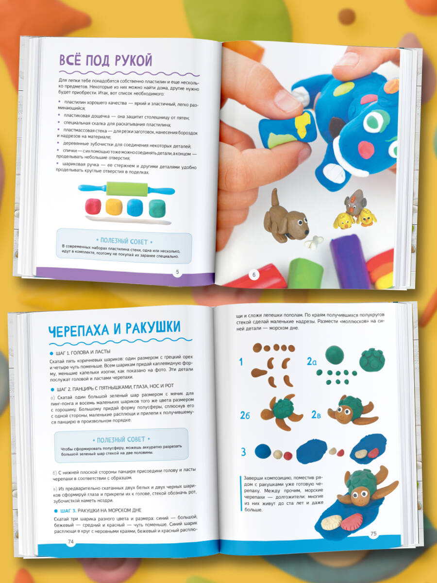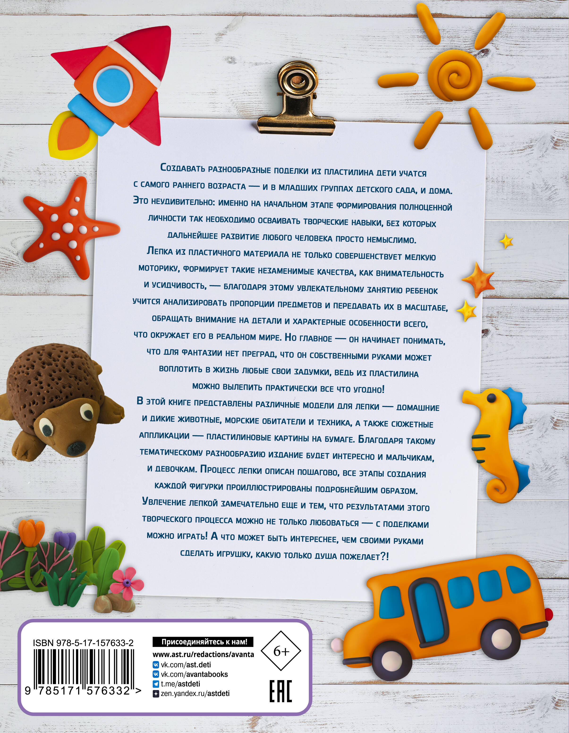 Эта книга наглядно покажет, в какие замечательные и необычные поделки может превратиться пластилин в руках ребенка. Издание заинтересует и мальчиков, и девочек - здесь пошагово, всопровождении подробных иллюстраций описывается, как правильно лепить из этого пластичного материала домашних питомцев, забавных зверюшек, морских обитателей, машинки и танки, космические корабли, а также составлять аппликации - тематические пластилиновые картины на бумаге. В основе каждой поделки используются элементарные геометрические фигуры, которые дети уже хорошо знают. Последовательно выполняя рекомендации, представленные в книге, они научатся придавать обычным пластилиновым шарикам весьма замысловатые формы. Создавая самые разные модели, ребенок не просто развлекается - он анализирует размеры и пропорции и учится воплощать свои задумки в жизнь, творчески их интерпретируя. Кроме того, смешивая пластилин разных цветов и тем самым добиваясь любого нужного оттенка, юный скульптор осваивает основы цветопередачи. Книга раскроет главные секреты пластилина и поможет детям материализовать в ярких поделках свои фантазии и мечты. Для младшего школьного возраста.| Издательство | ИЗДАТЕЛЬСТВО "АСТ" |