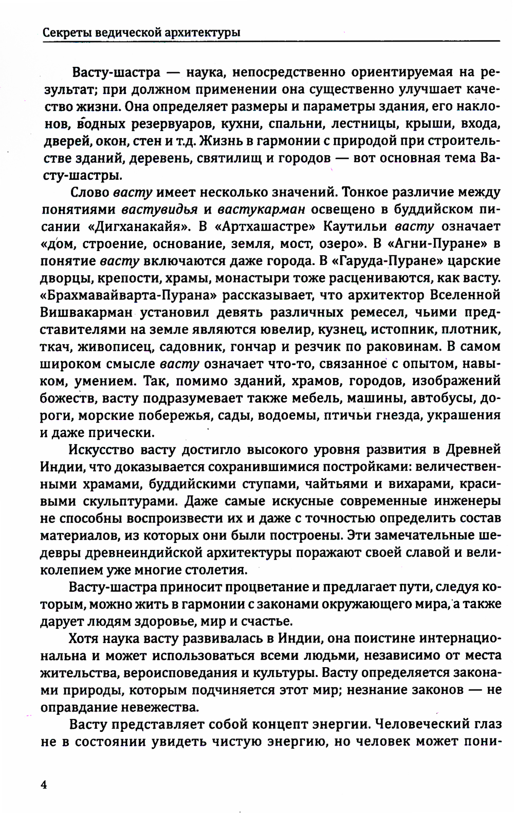 Согласно основному принципу сакральной архитектуры, жилище, храм, дом представляют собой весь Космос в символическом и миниатюрном виде, а также являются пространством, которое помогает человеку общаться с Божественным и гармонизировать свою жизнь. Здание должно являть собой образец высшей соразмерности, быть генератором положительных энергий, настраивать человека в резонанс с законами природы и поддерживать его здоровье, процветание и духовное благосостояние. Дом, как и храм, соединяет человека с Богом, земное с небесным, временное с вечным. Ведическая архитектурная парадигма является матрицей, задающей способы восприятия универсума как «миро-здания», и она по праву считается основой фэн-шуй и источником храмового зодчества эпохи Ренессанса.| Издательство | Амрита-Русь |