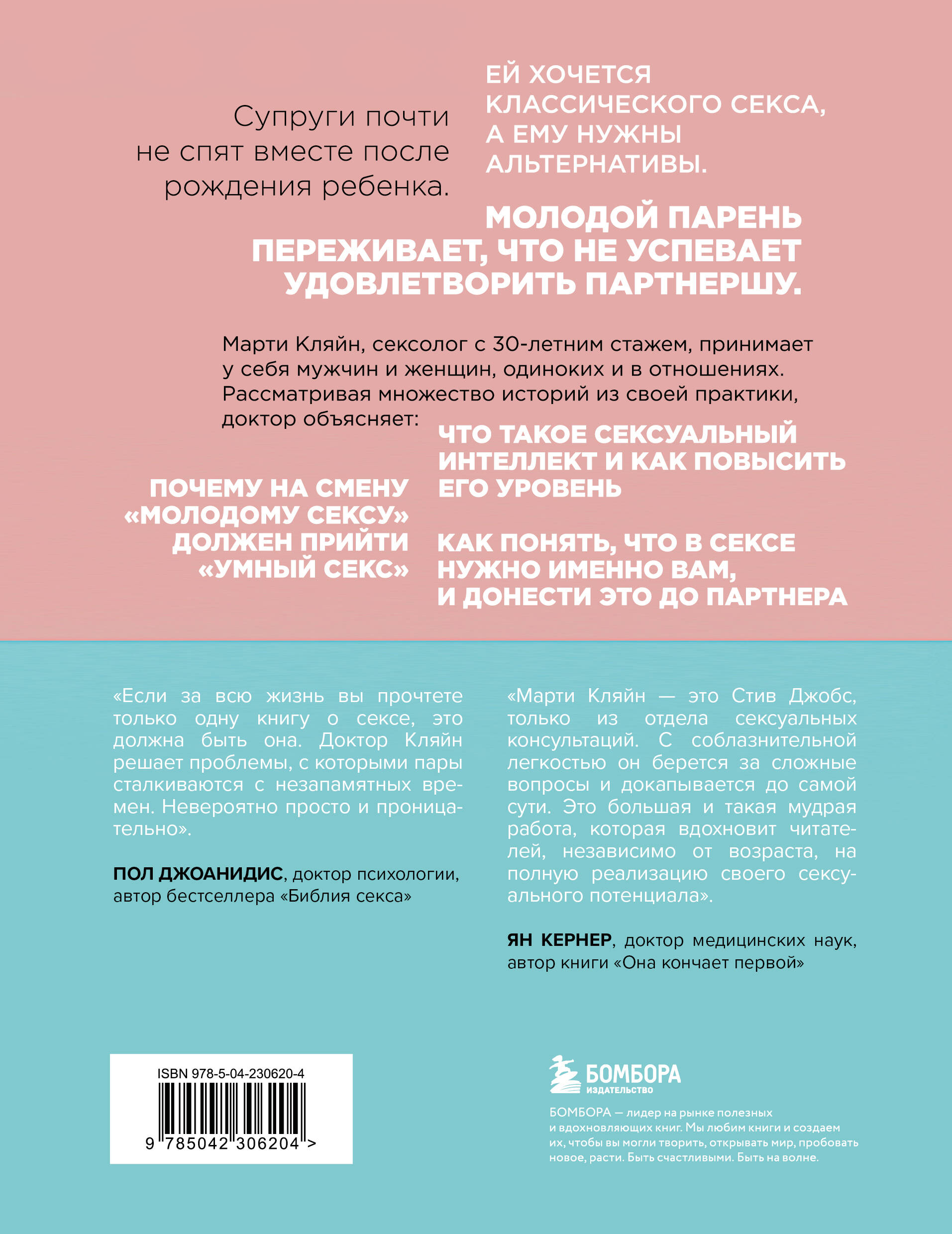 Эта книга - не виагра в бумажном формате. Скорее операция на мозге, которая удалит из вашей жизни понятие сексуальной нормы. Миллионы женщин думают: если у мужчины не встает или он кончает слишком быстро, значит, я провалилась. И еще куча стереотипов, которые в итоге приводят к тому, что партнеры перестают заниматься любовью, дабы избежать смущения и сохранить чувство собственного достоинства. Рассматривая множество историй из своей практики, доктор Кляйн объясняет: что такое сексуальный интеллект и как повысить его уровень; почему на смену «молодому сексу» должен прийти «умный секс», а также как понять, что в сексе нужно именно вам, и донести это до партнера. Эта книга сделает секс интересным занятием как для новичков, так и для пар с большим опытом. «Сексуальный интеллект» реанимирует ваши отношения или переведет их на другой уровень. Отзывы «Эта книга - практическое пособие по улучшению вашей сексуальной жизни. Кляйн освобождает и провоцирует - ваши знания о сексе изменятся навсегда». - Эстер Перель, автор книги «Право на "лево"» «Марти Кляйн - это Стив Джобс, только из отдела сексуальных консультаций. С соблазнительной легкостью он берется за сложные вопросы и докапывается до самой сути. Это большая и такая мудрая работа, которая вдохновит читателей, независимо от возраста, на полную реализацию своего сексуального потенциала». - Ян Кернер, доктор медицинских наук, автор книги «Она кончает первой» «Если за всю жизнь вы прочтете только одну книгу о сексе, это должна быть она. Доктор Кляйн решает проблемы, с которыми пары сталкиваются с незапамятных времен. Невероятно просто и проницательно». - Пол Джоанидис, доктор психологии, автор «Библии секса»| Издательство | ООО "Издательство "Эксмо" |