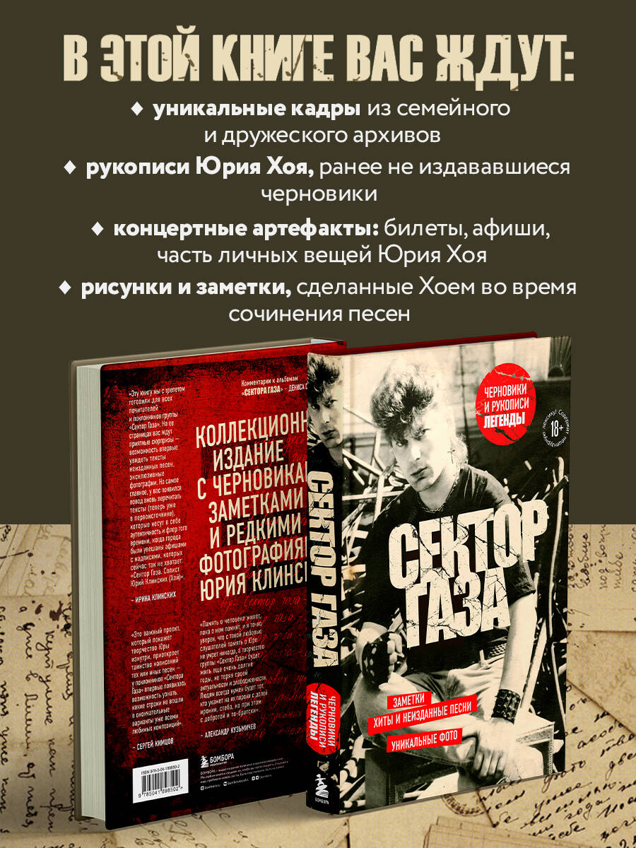 Аннотация: Сектор Газа. Черновики и рукописи легенды. Заметки, хиты и неизданные песни, уникальные фото