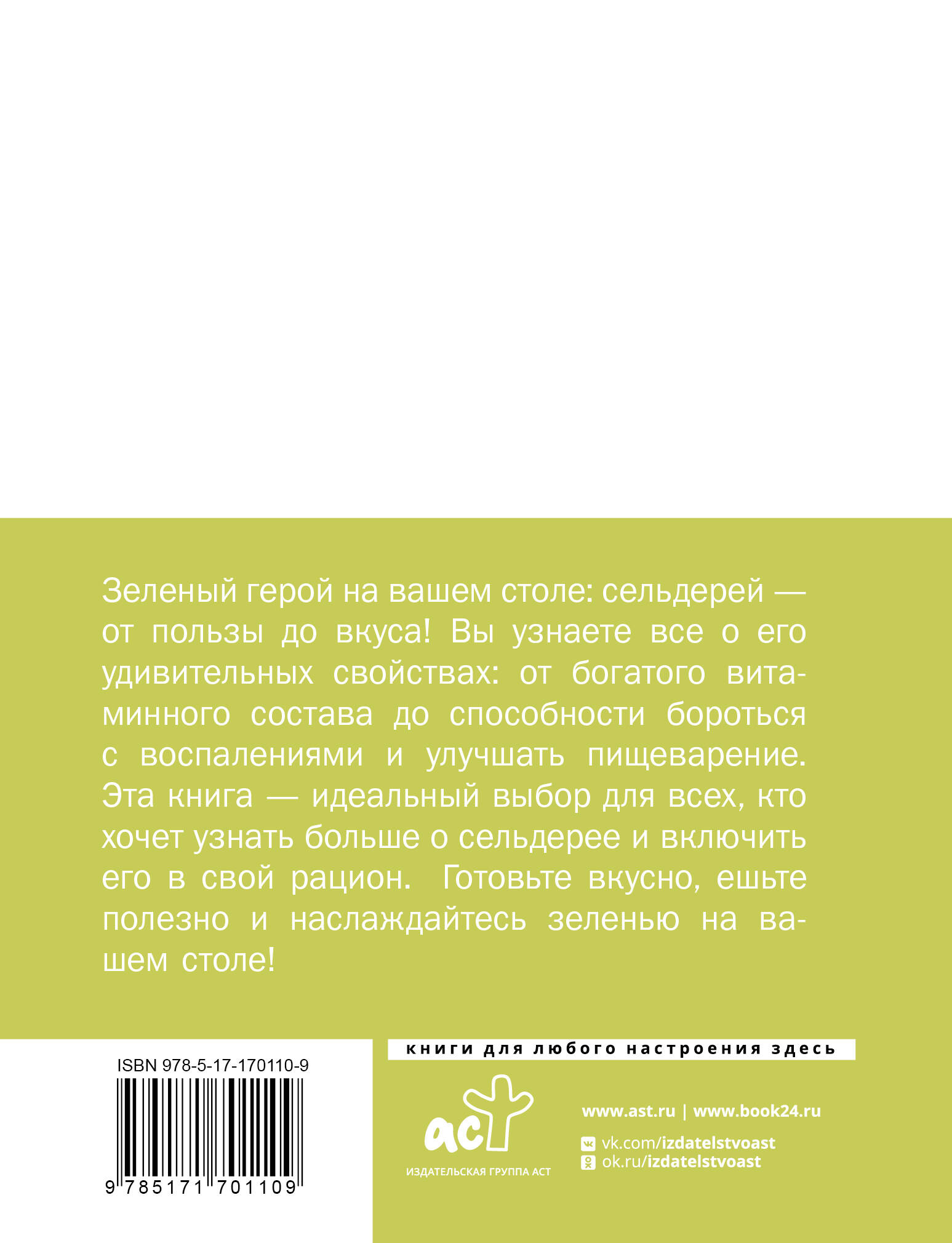 Зеленый герой на вашем столе: сельдерей - от пользы до вкуса! Вы узнаете все о его удивительных свойствах: от богатого витаминного состава до способности бороться с воспалениями и улучшать пищеварение. Эта книга - идеальный выбор для всех, кто хочет узнать больше о сельдерееи включить его в свой рацион. Готовьте вкусно, ешьте полезно и наслаждайтесь зеленью на вашем столе!| Издательство | Издательство "АСТ" |