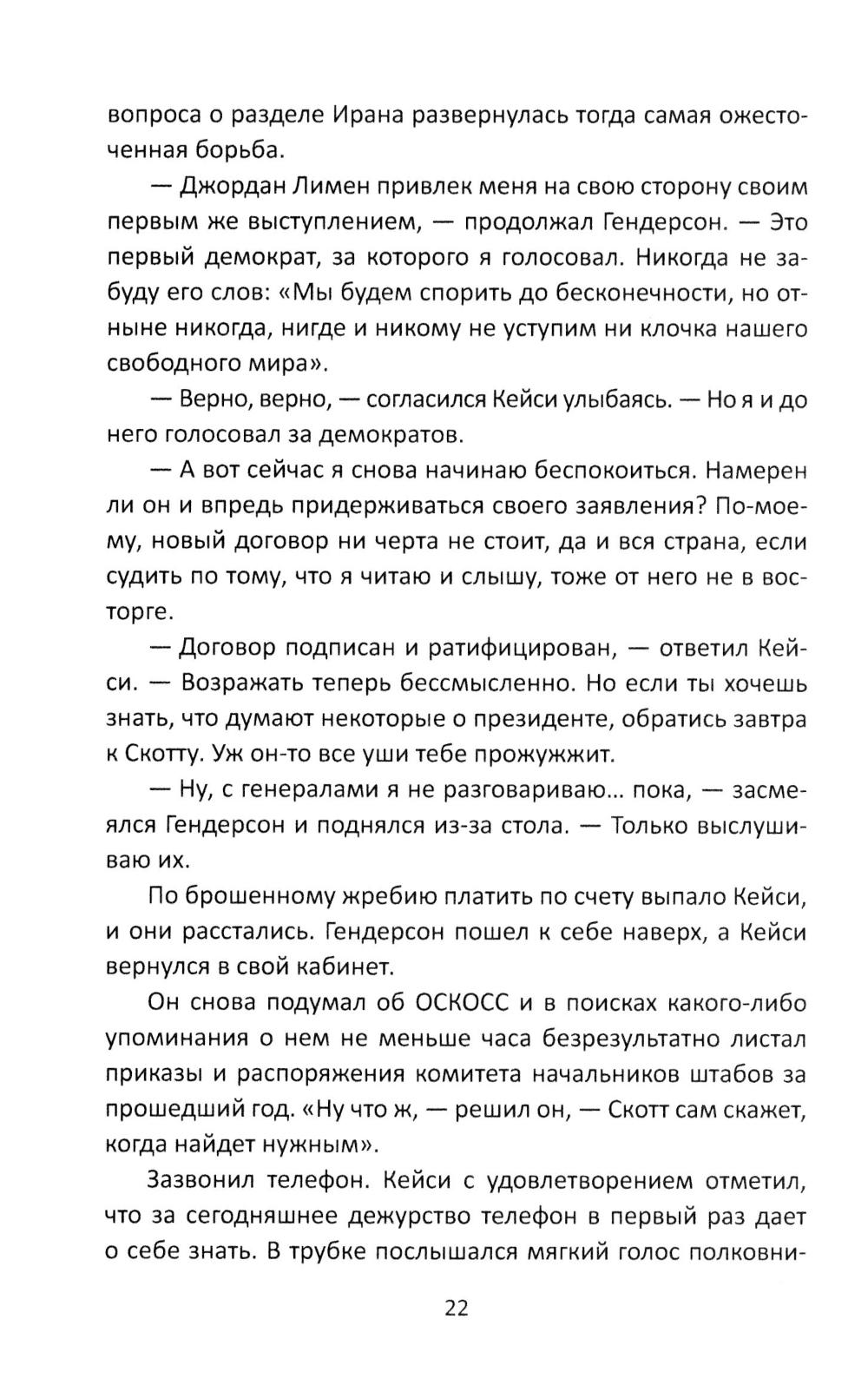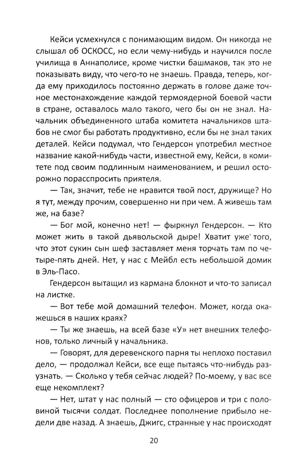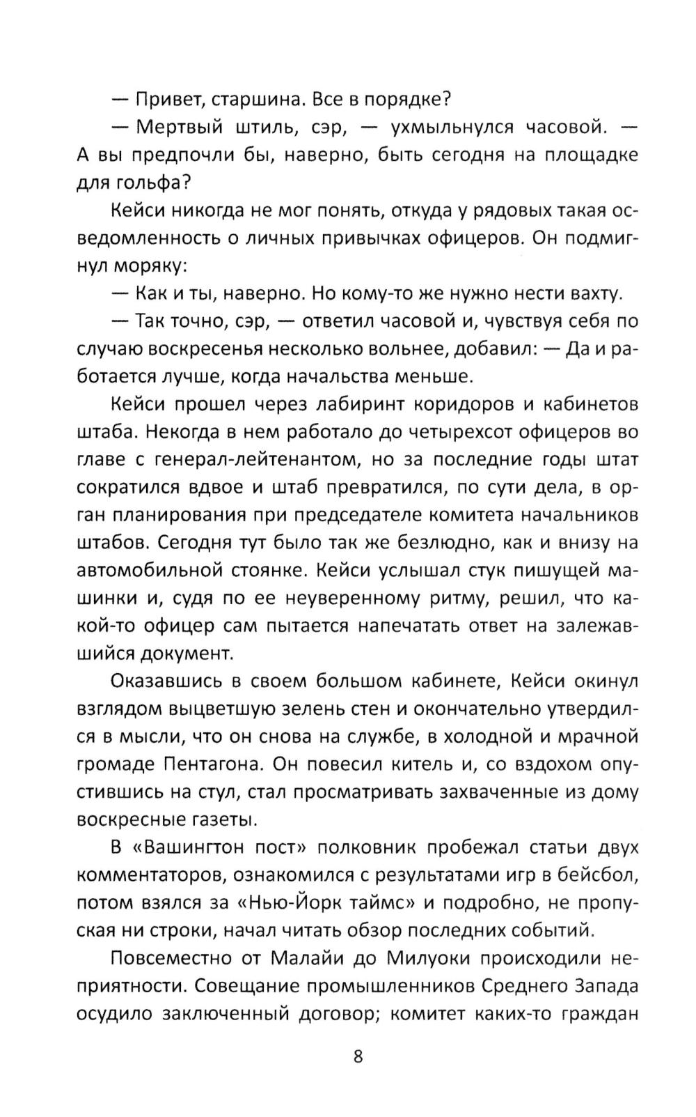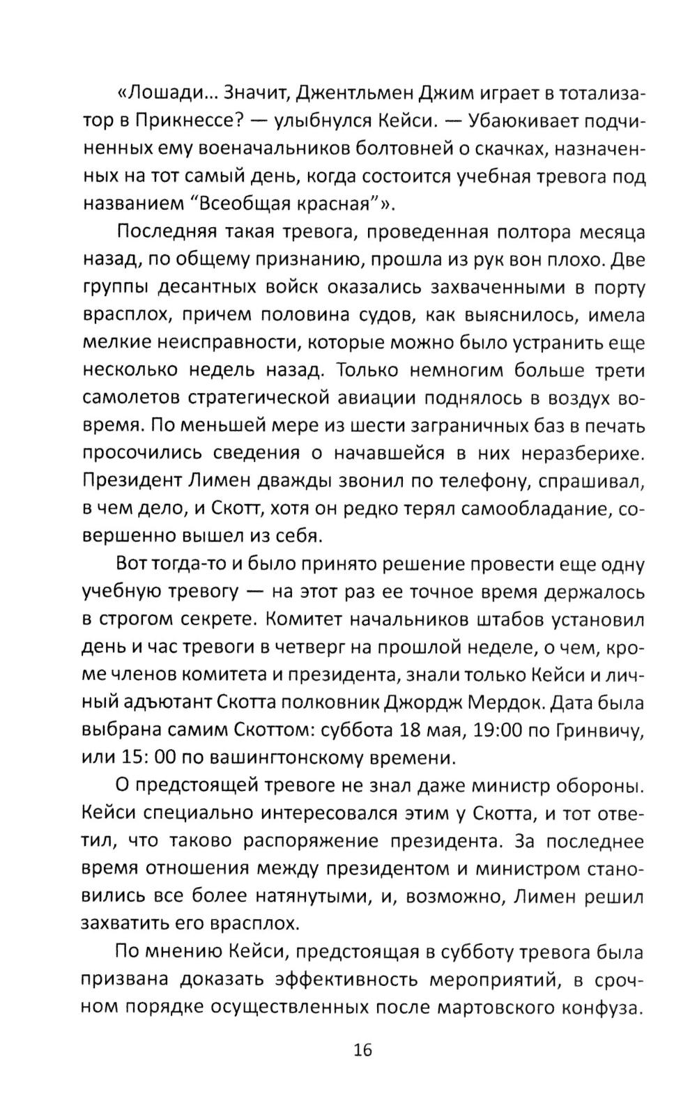 Этот роман вышел в свет во время Карибского кризиса, когда страх перед ядерной войной достигал пика. Роман сразу попал в список бестселлеров «Нью-Йорк Таймс» и даже трижды его возглавлял. Президент Кеннеди, когда прочитал этот роман, сказал, что знает парочку генералов, которые не прочь были бы провернуть нечто подобное. ...Только что заключен советско-американский договор о ядерном разоружении. Весь мир облегченно вздохнул, отойдя от края бездны. Но не всех в США устраивает такой ход событий. Американские «бешеные» готовятся захватить власть, чтобы установить в стране военную диктатуру. Заговор против президента и его правительства готовит группа высших генералов и высокопоставленных политических деятелей. Перипетии напряженной борьбы президента США с заговорщиками и составляют основное содержание книги.| Издательство | Родина |