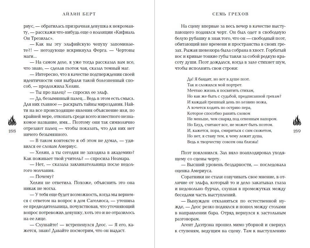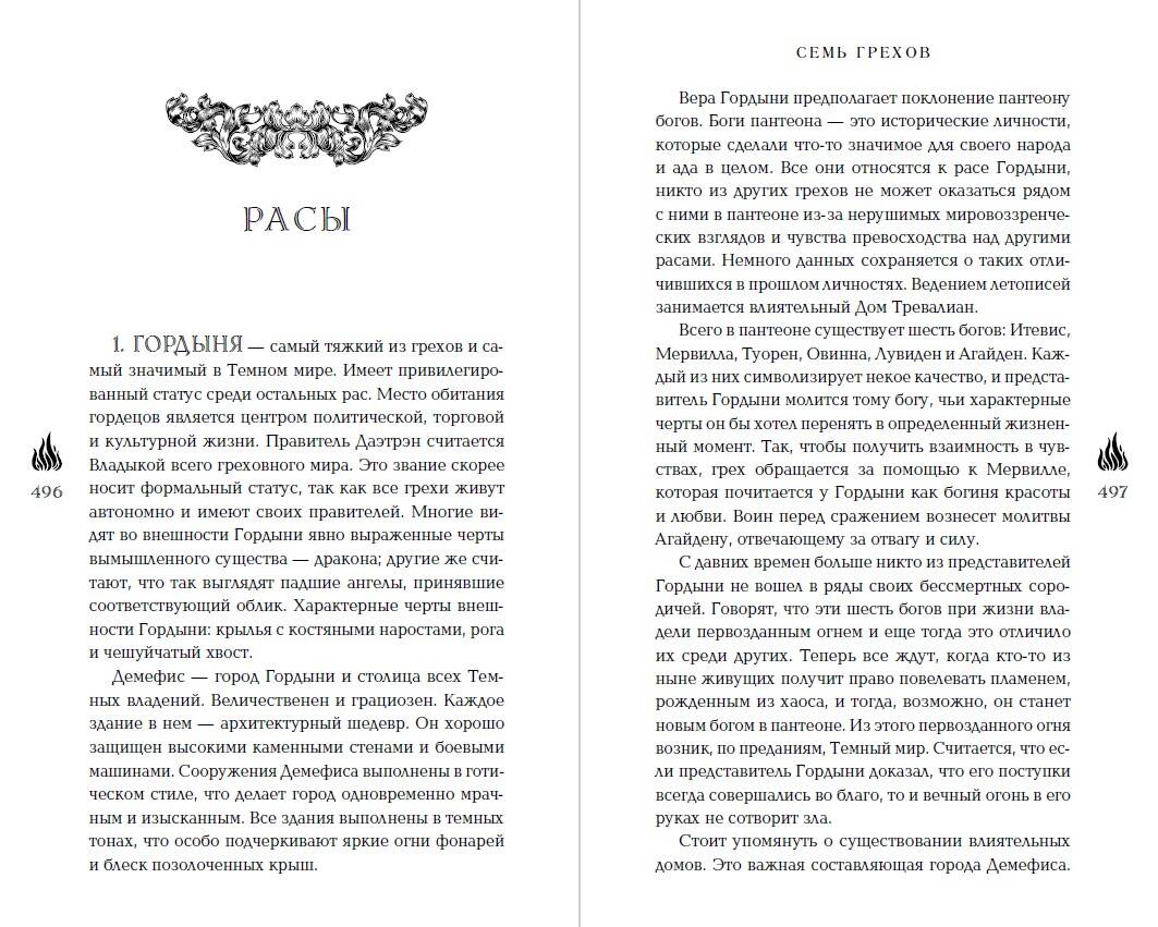 «Семь грехов» - уникальное молодежное фэнтези от российской писательницы Айлин Берт, вдохновленное творчеством Анджея Сапковского и Нила Геймана, а также компьютерными играми «Mass Effect» и «Dragon Age». Когда смертный погибает, у его души есть два места для перерождения - Светлый мир и мир Тьмы. В Темном мире бок о бок живут семь рас, олицетворяющих смертные грехи. Гордыня - Падшие ангелы, стоящие у власти. Алчность - Темные эльфы-некроманты, сильнейшие из магов. Гнев - Минотавры, мастера ближнего боя. Блуд - Черти, способные при помощи лука справляться с несколькими противниками сразу. Зависть - Горгоны, искусные колдуны. Чревоугодие - Паукообразные, обладающие непревзойденными навыками защиты. Уныние - Скитающиеся призраки, подчиняющие разум врагов собственной воле. Когда грехорожденные разных рас начинают бесследно пропадать, Темный Владыка Даэтрен не может не вмешаться. Он поручает своей подопечной, демонессе Неамаре, разобраться с таинственными исчезновениями, но на этом пути ей не справиться в одиночку… Обложку рисовала популярная отечественная художница Narael Daemon! Невероятное внутреннее оформление: карта, плей-лист, глоссарий, письма и дневники! Роман придется по душе фанатам атмосферного темного фэнтези. Интригующе, динамично и захватывающе!| Издательство | ООО "Издательство "Эксмо" |