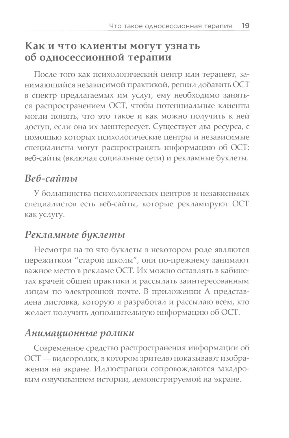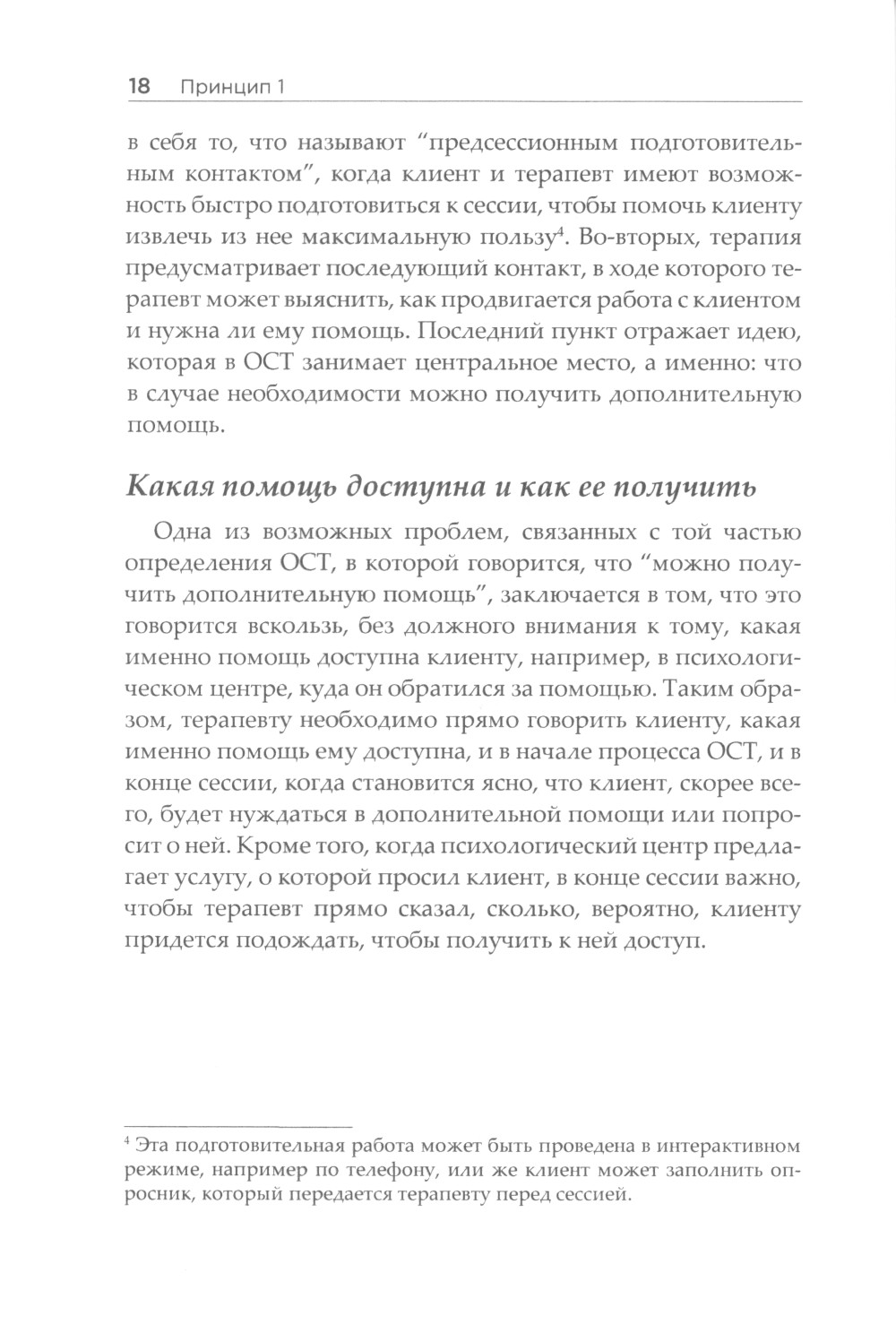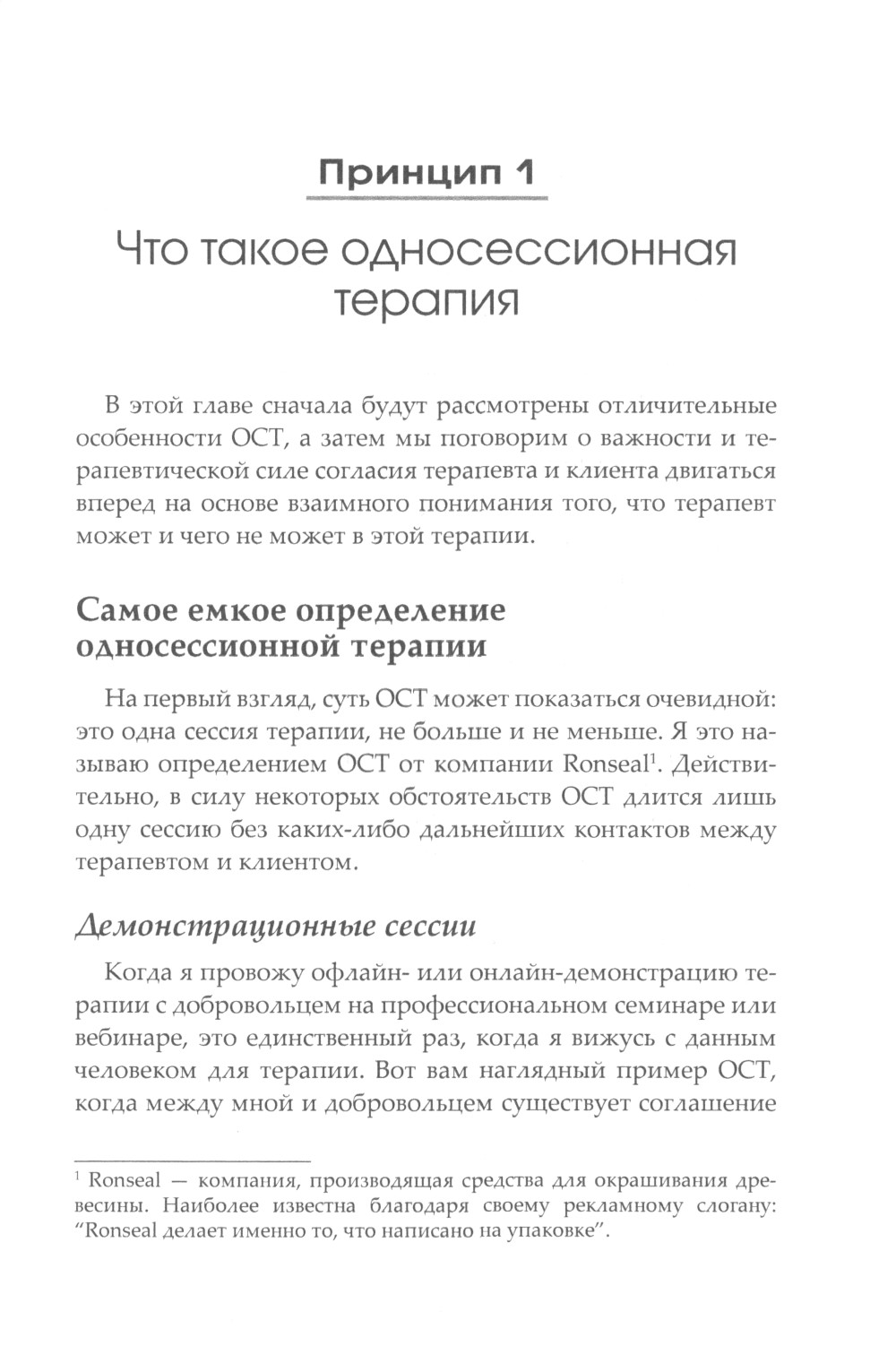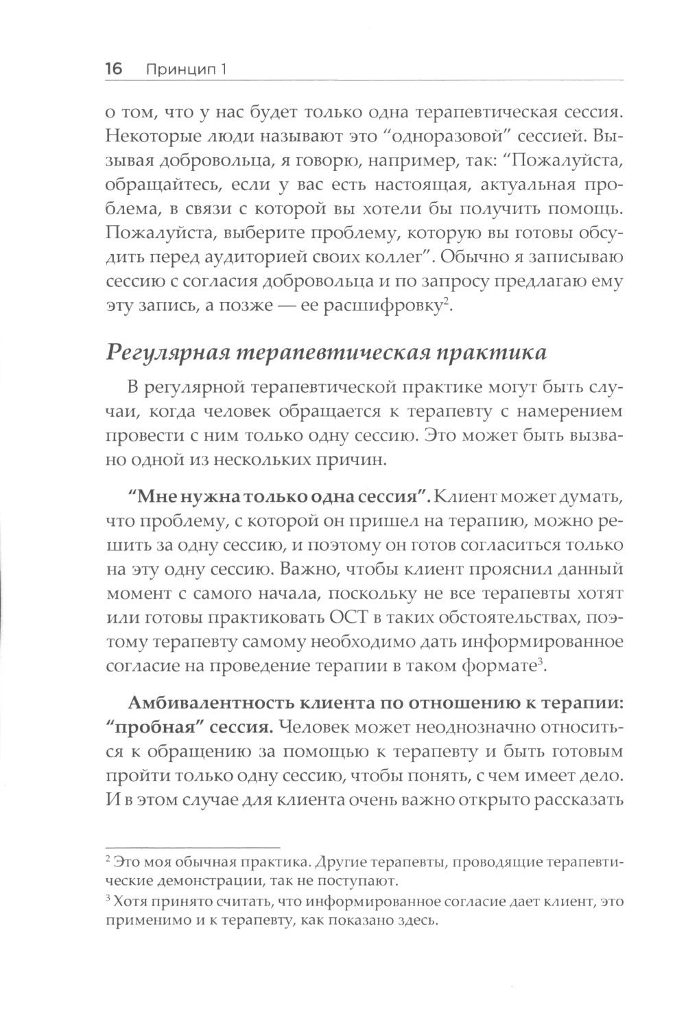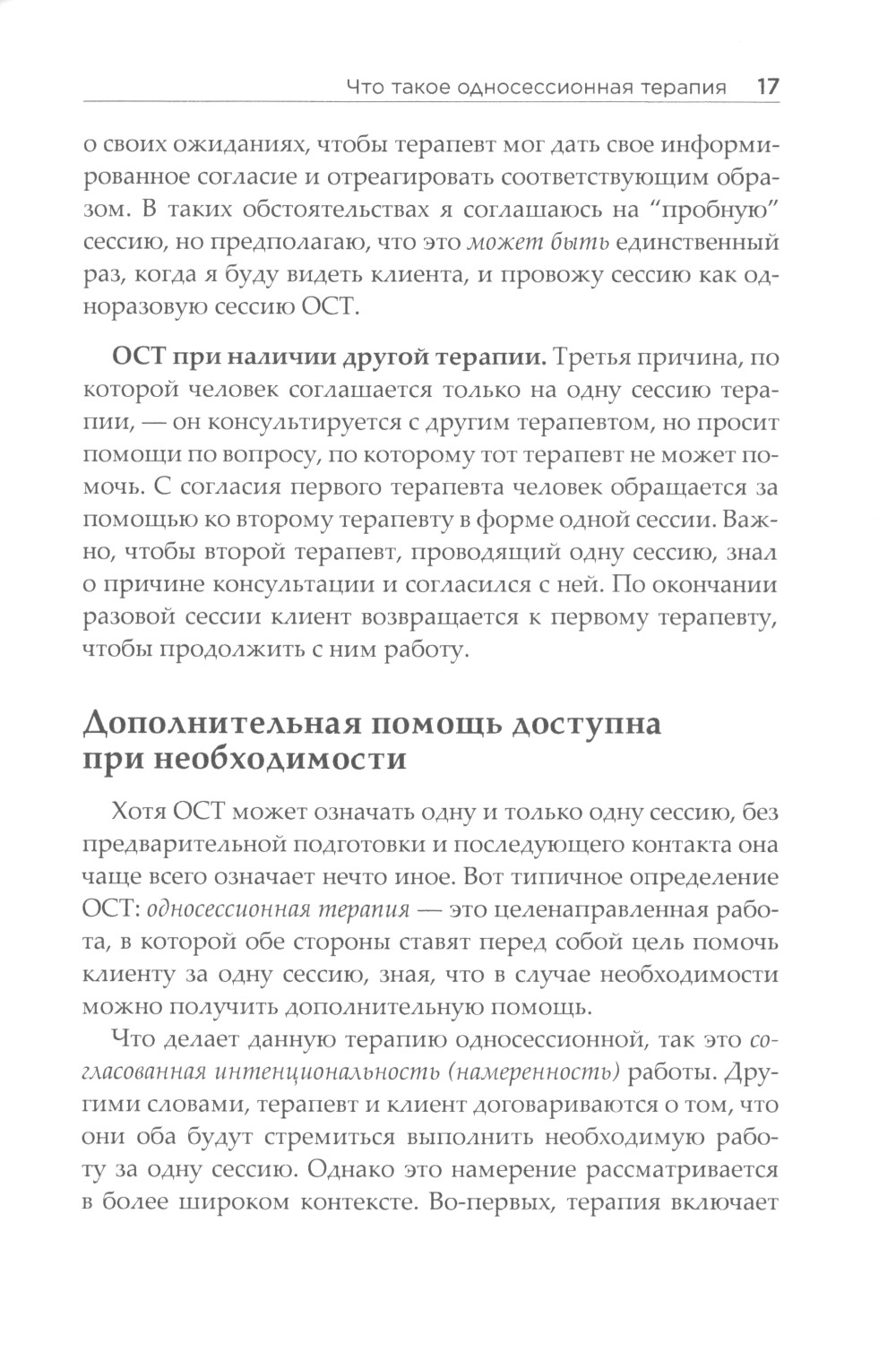 В этой книге профессор Драйден описывает семь ключевых принципов односессионной терапии (ОСТ). Вначале автор обсуждает природу ОСТ и выдвигает гипотезу о том, что ОСТ нельзя изучать в отрыве от контекста, в котором она применяется. Далее рассматриваются основные характеристики односессионного подхода ("майндсета"), который лежит в основе классической практики ОСТ. Автор объясняет, что речь не идет о попытках втиснуть несколько сессий в одну. ОСТ - это полноценная терапевтическая методика, предлагающая собственный процесс психологических изменений, и автор подробно его исследует. Один из часто задаваемых вопросов по поводу ОСТ заключается в том, реально ли сформировать продуктивные терапевтические отношения в рамках единственной сессии. Профессор Драйден доказывает, что это вполне возможно, утверждая, что эффективная ОСТ основана на развитии и поддержании хорошего рабочего альянса, и описывая основные особенности такого альянса. Автор подчеркивает, что эффективная практика ОСТ основана, с одной стороны, на общепринятом представлении о классическом односессионном подходе, а с другой - на индивидуальном вкладе терапевтов в ОСТ, основанном на их представлениях о наиболее эффективных подходах к решению психологических проблем. В качестве иллюстрации профессор Драйден рассказывает о своем вкладе в практику ОСТ и о собственных методах работы.| Издательство | Диалектика |