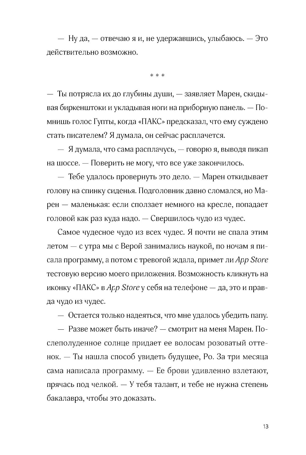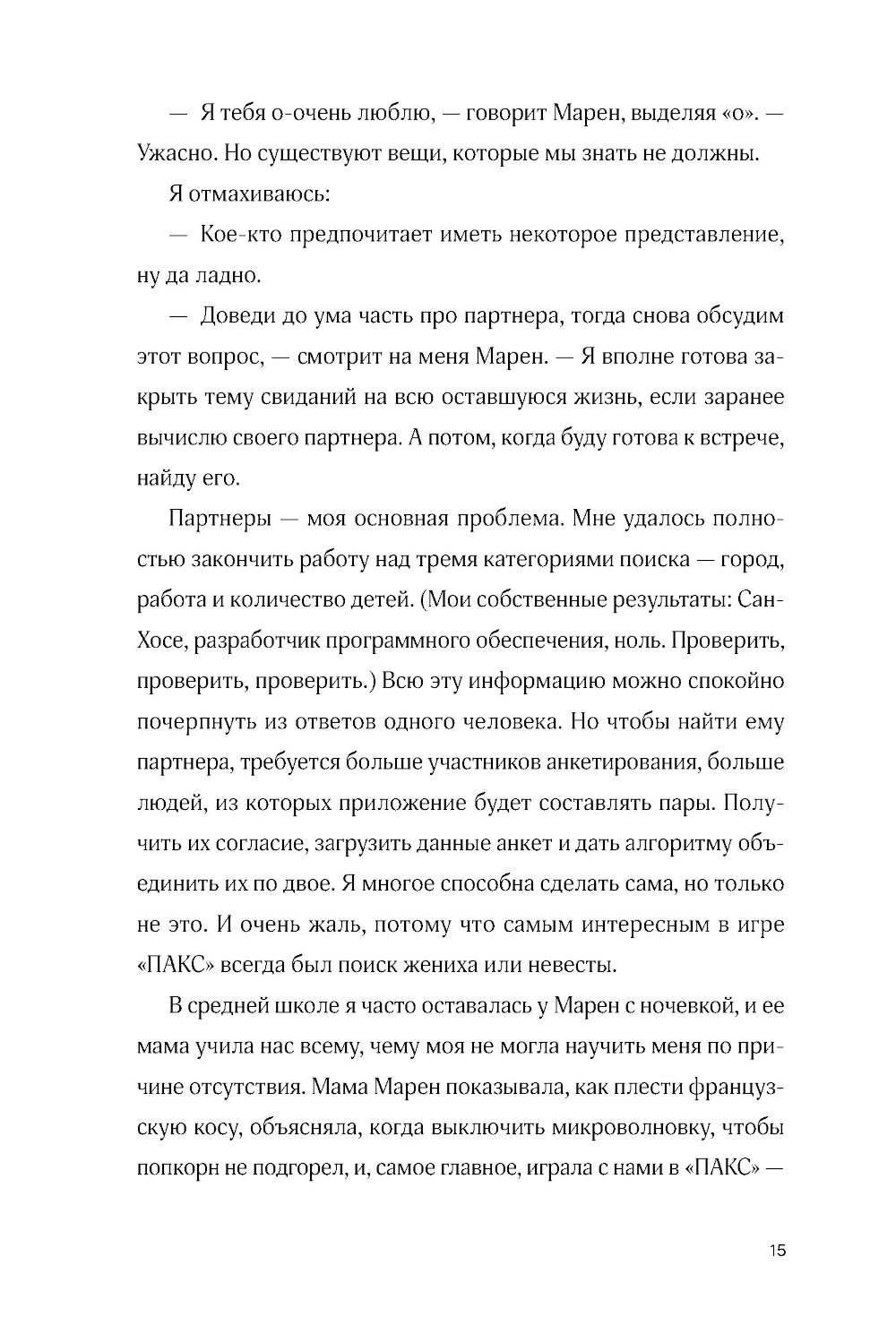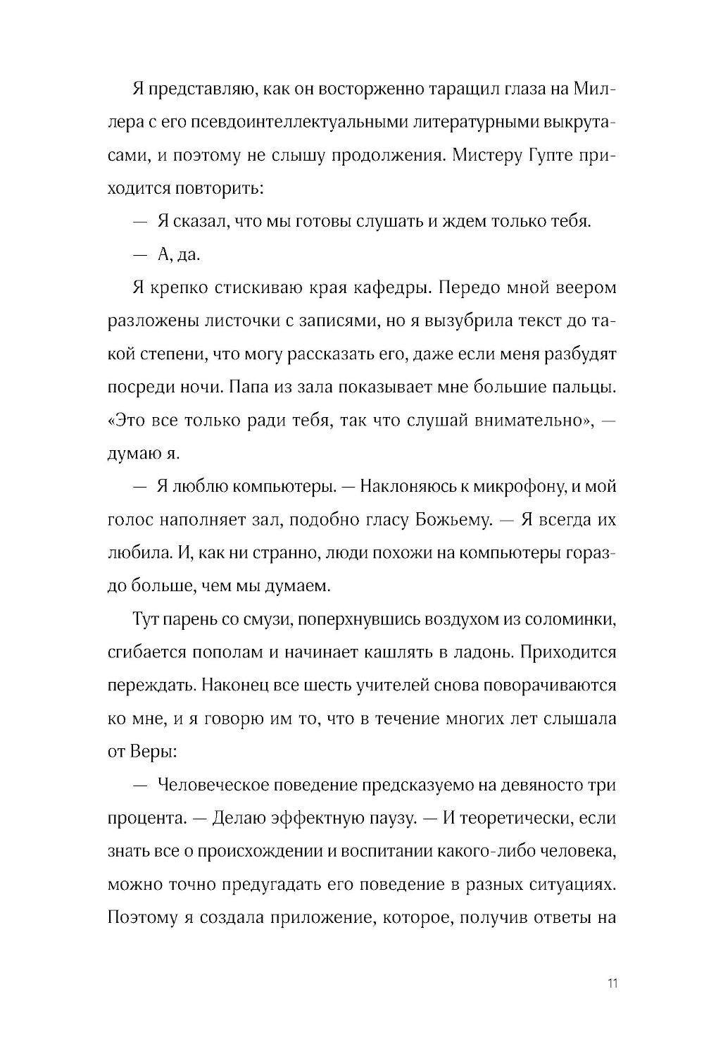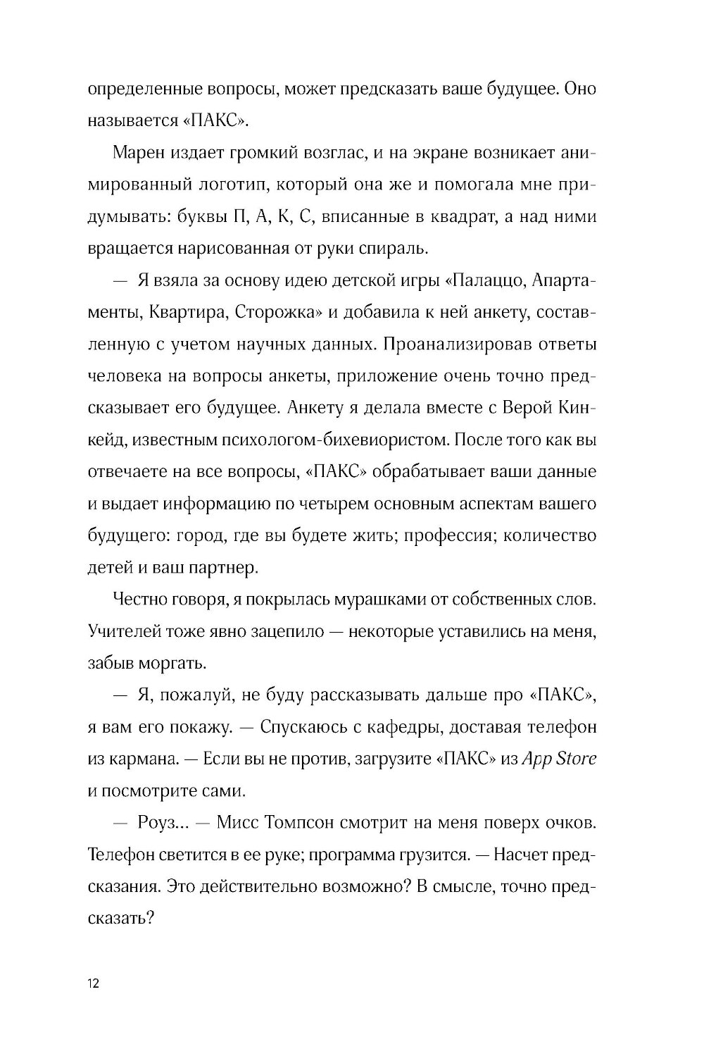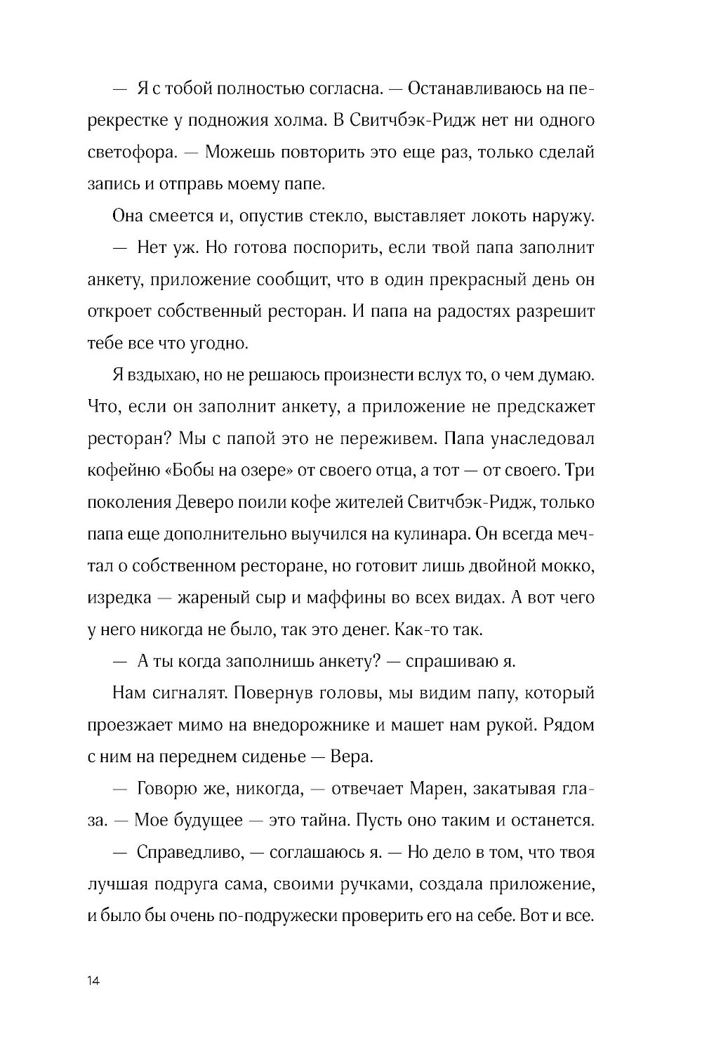 Старшеклассница Ро Деверо создала приложение, способное предсказать будущее и даже подобрать пользователю идеального партнера. Правда, точность прогноза - 93%. И никто не знает, что может произойти в серой зоне. Проект быстро набирает популярность и привлекает внимание инвесторов. Теперь, чтобы люди ей поверили, Ро сама должна найти партнера через приложение. Вот только алгоритм выдает совершенно неожиданный результат. Ее мэтч - Миллер, друг детства, с которым она давно в ссоре. У Ро нет выбора: придется уговорить Миллера подыграть ей, несмотря на скопившиеся обиды. Но куда их заведет этот фейковый роман?| Издательство | Marshmallow Books |