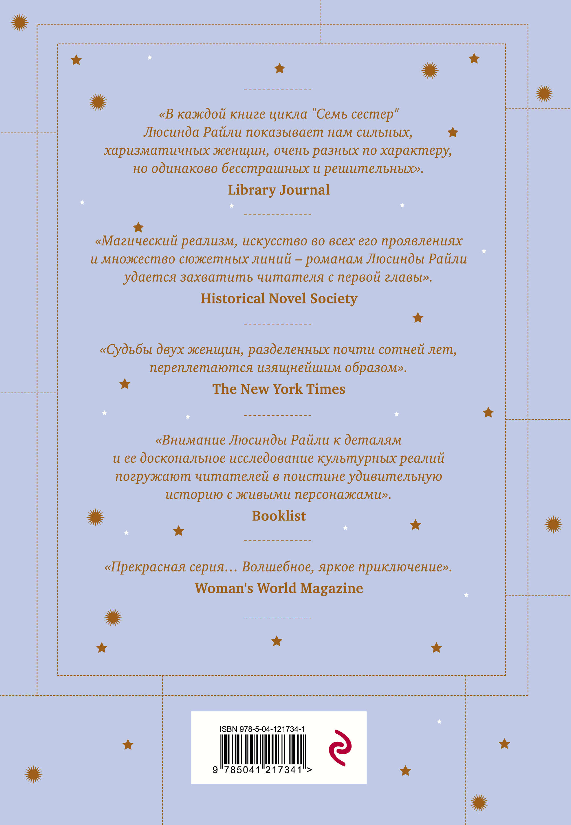 Тигги Деплеси всегда жила в гармонии с природой. Поэтому она выбрала для себя работу с дикими животными. Но череда драматичных событий, в том числе смерть ее приемного отца Па Солта, заставляют Тигги многое изменить в свой жизни. Чтобы понять, кем она хочет быть на самом деле, Тигги отправляется в солнечную Испанию, Гранаду, где, как она подозревает, живет ее настоящая семья. Так Тигги погружается в неразрывно связанную с гражданской войной 30-х годов историю своих предков, испанских цыган, среди которых были прекрасные музыканты и, что интригует Тигги больше всего, одна великолепная танцовщина фламенко, чья история станет для "сестры луны" своего рода новой путеводной звездой. "В каждой книге цикла "Семь сестер" Люсинда Райли показывает нам сильных, харизматичных женщин, очень разных по характеру, но одинаково бесстрашных и решительных". Library Journal "Магический реализм, искусство во всех его проявлениях и множество сюжетных линий - романам Люсинды Райли удается захватить читаттеля с первой главы". Historical Novel Society "Судьбы двух женщин, разделенных почти сотней лет, переплетаются изящнейшим образом". The New York Times "Внимание Люсинды Райли к деталям и ее доскональное исследование культурных реалий погружают читателей в поистине удивительную историю с живыми персонажами". Booklist "Прекрасная серия... Волшебное, яркое приключение". Woman's World Magazine